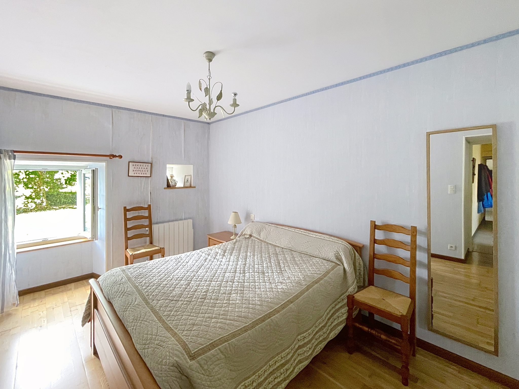 La maison propose un confort de plain-pied grâce à une première chambre située au rez-de-chaussée, avec sa propre salle d'eau et wc PMR, un atout rare qui assure praticité et accessibilité. À l'étage, trois chambres supplémentaires s'articulent autour d'une salle de bain familiale, et un WC viennent compléter l'ensemble, garantissant à chacun confort et intimité.