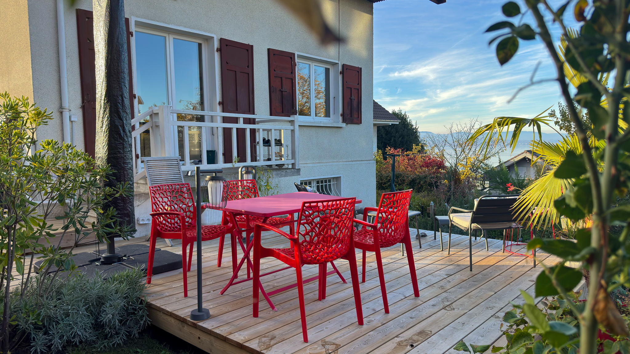 A l'extérieur de nombreux espaces pour profiter de la vue sur le lac et du calme du quartier, également un abri voiture. Elle bénéficie d'un emplacement idéal, à proximité immédiate de la gare, facilitant les trajets pour les frontaliers, ainsi que des écoles, des commerces et de l'embarcadère. Cette propriété allie harmonieusement le charme de l'ancien et le confort du moderne, pour une qualité de vie incomparable.