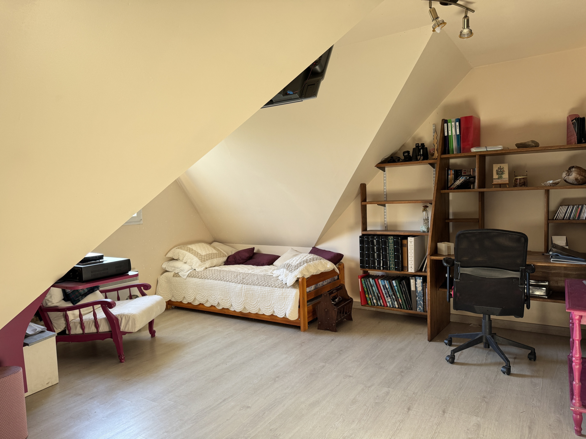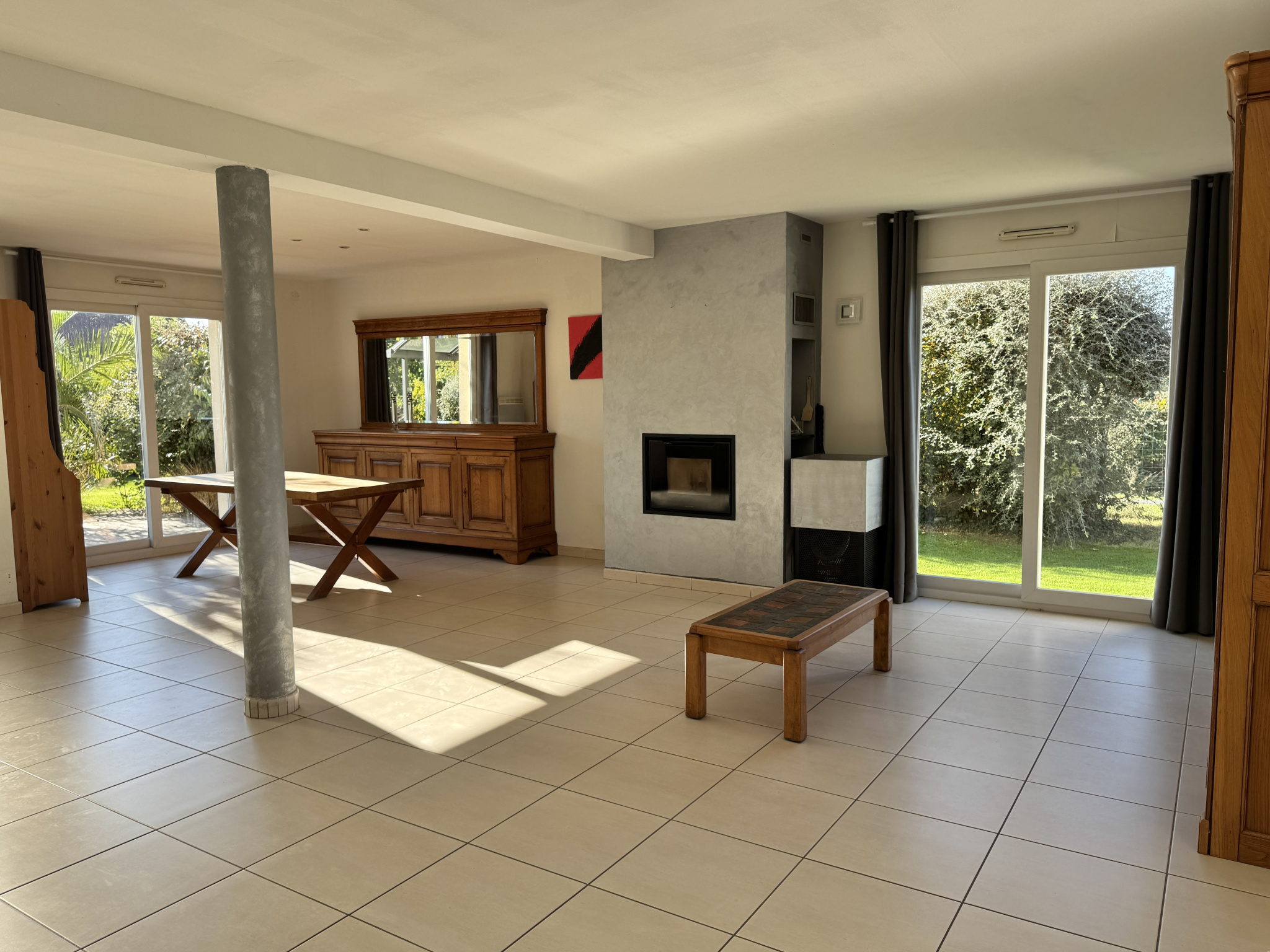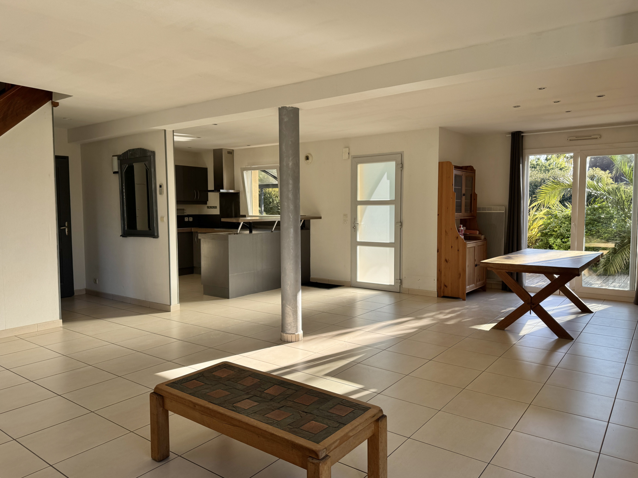 Elle se compose au rez-de-chaussée d'un vaste salon/séjour de 45m2, très lumineux, avec insert à granulés, d'une cuisine aménagée et équipée ouverte, d'un cellier/buanderie, d'un dégagement, d'une chambre ainsi que d'une salle d'eau avec WC. À l'étage, le palier dessert trois chambres supplémentaires, dont deux avec dressing, ainsi qu'une salle de bains avec douche, baignoire et WC. Un double garage de 40m2 avec grenier offre un bel espace de rangement ou un potentiel d'aménagement supplémentaire.