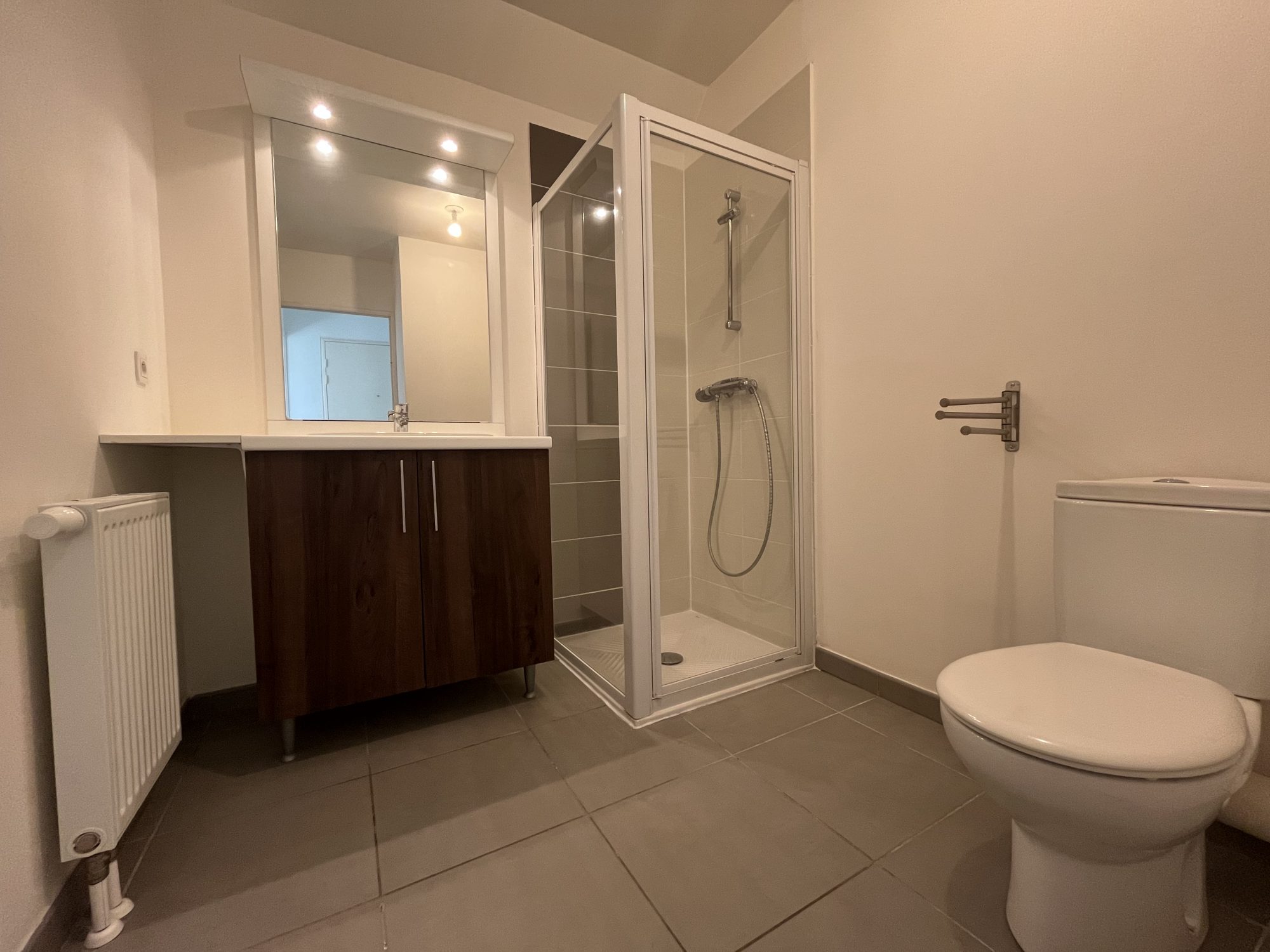 Il est composé de la façon suivante : une entrée avec placard, un séjour/salon avec une terrasse de 3m², une cuisine ouverte aménagée, une chambre avec placard et une salle de douche avec WC.