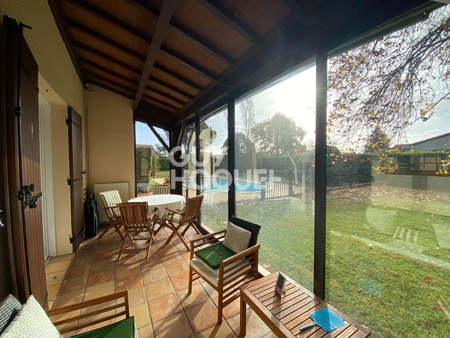 Dans un secteur recherche, proche toutes commodités et gare, nichée dans un écrin de verdure, nous aurons le plaisir de vous faire découvrir cette charmante traditionnelle, baignée de lumière aux volumes généreux. Dès sa belle entrée, une spacieuse cuisine, une large séjour-salon avec cheminé et sa véranda vous réservent de bons moments, à partager en famille et entre amis. 5 chambres dont 2 en rez-de-chaussée, un grand garage attenant. 1 piscine 8x4.5 le tout au calme et sans vis-à-vis, vous y attendent sans tarder. EXCLUSIVITE