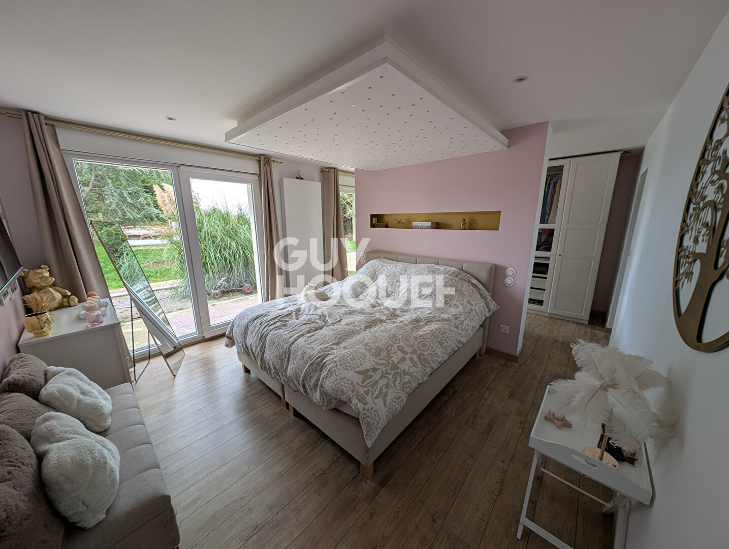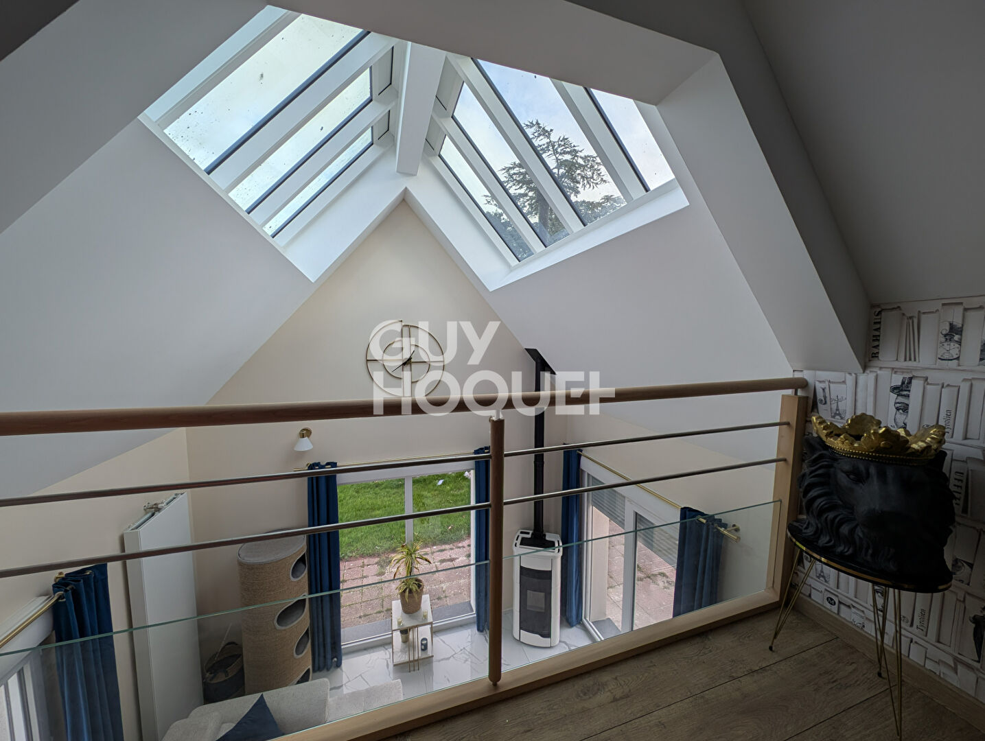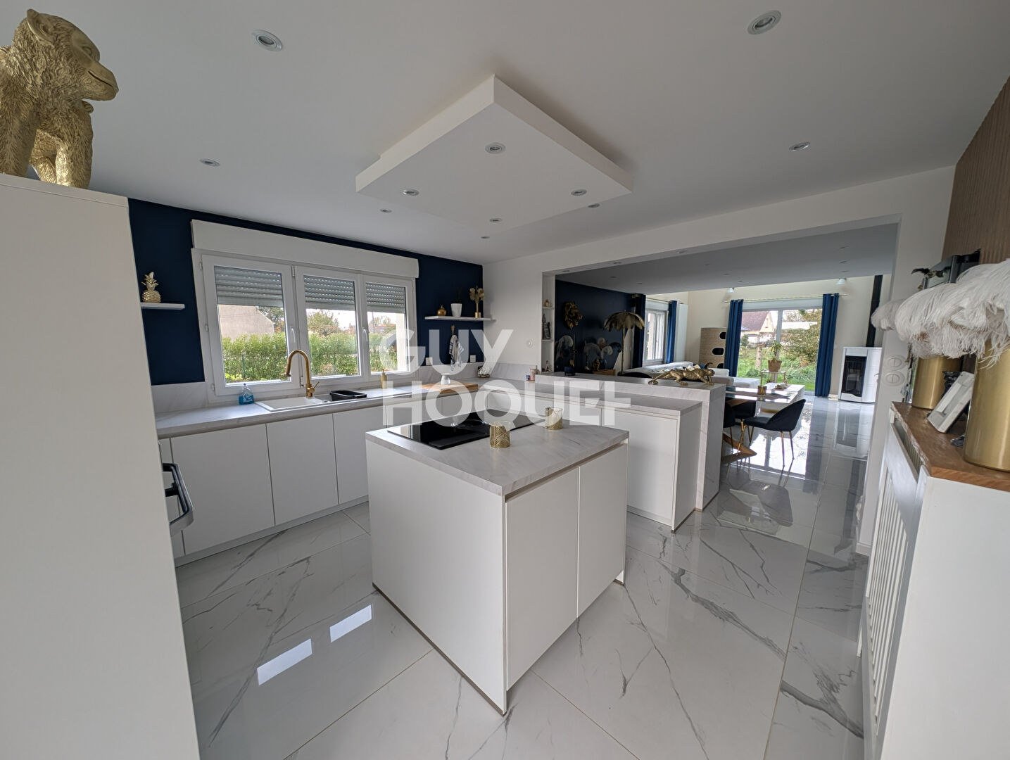 Aux Hemmes de Marck, découvrez une maison semi plain-pied de 220 m² entièrement rénovée, implantée sur un terrain de 5 918 m² exposé ouest, intégralement constructible.