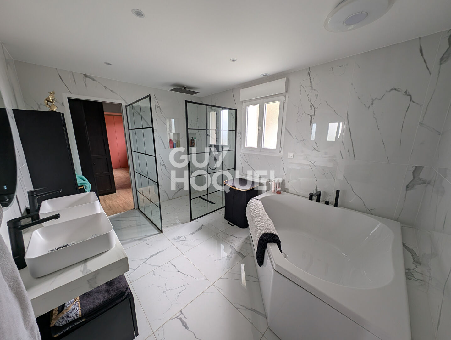 Pour le coin nuit, deux chambres, une salle de bains avec douche et baignoire et un dressing .