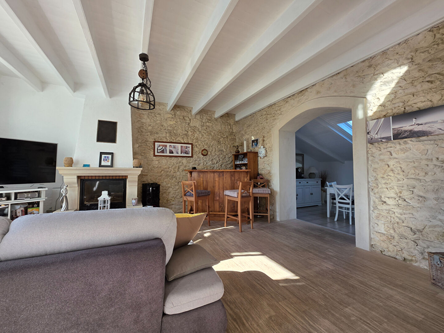 A deux pas des commodités, dans un secteur calme et recherché, belle charentaise rénovée avec gout composée d'un vaste séjour salon, cuisine aménagée et équipée, deux chambres.