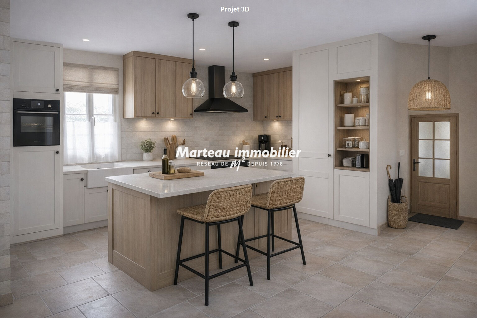 Pour une meilleure projection de votre futur résidence, des projets 3D à l'ambiance chaleureuse sont inclus parmi les photos (cuisine et salon).