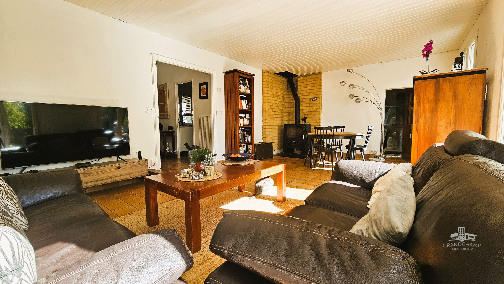Dès l'entrée, vous serez séduit par la luminosité de la pièce de vie, tournée vers le sud grâce à ses trois grandes baies vitrées. Le séjour, réchauffé par un poêle à bois récent, peut être facilement agrandi (jusqu'à 40 m²) en ouvrant sur une des chambres attenantes.