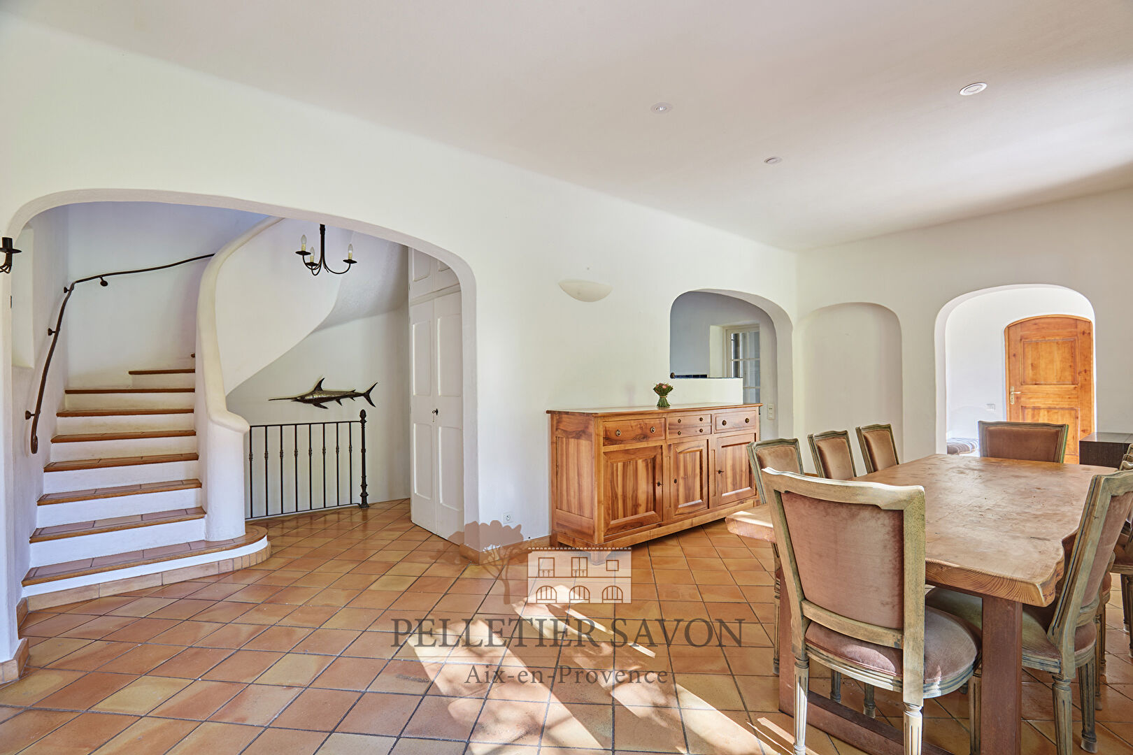 Dans l'un des secteurs les plus prisés d'Aix-en-Provence, à proximité immédiate du Country Club, l'Immobilière Pelletier Savon vous propose une magnifique villa signée par l'architecte Jean-Paul Bernard. Nichée au coeur d'un terrain paysager, plat et clos, planté d'oliviers et d'arbres fruitiers, cette propriété conjugue élégance, intimité et confort.