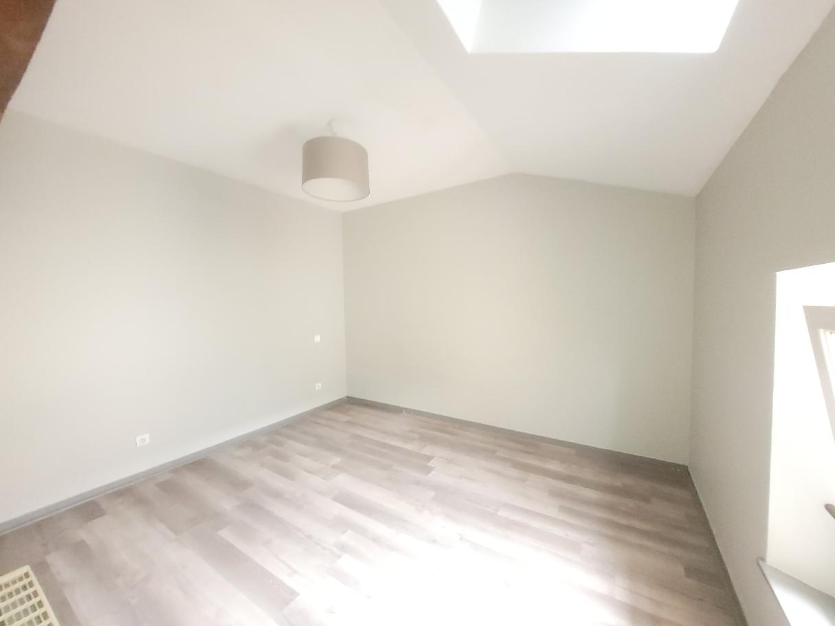 Au centre-ville, ce très bel appartement ancien, entièrement rénové avec goût, en duplex vous propose au premier niveau une immense pièce de jour, une cuisine entièrement aménagée, deux celliers et un wc.
