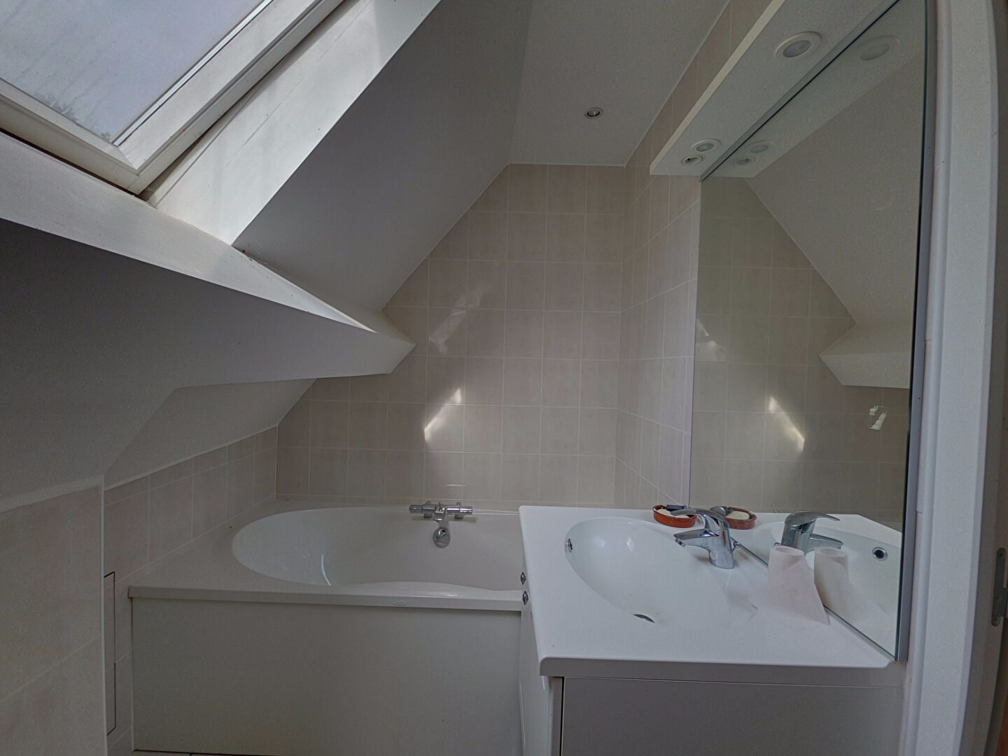 A l'étage, le palier dessert deux chambres dont une avec dressing et une salle de bains avec wc