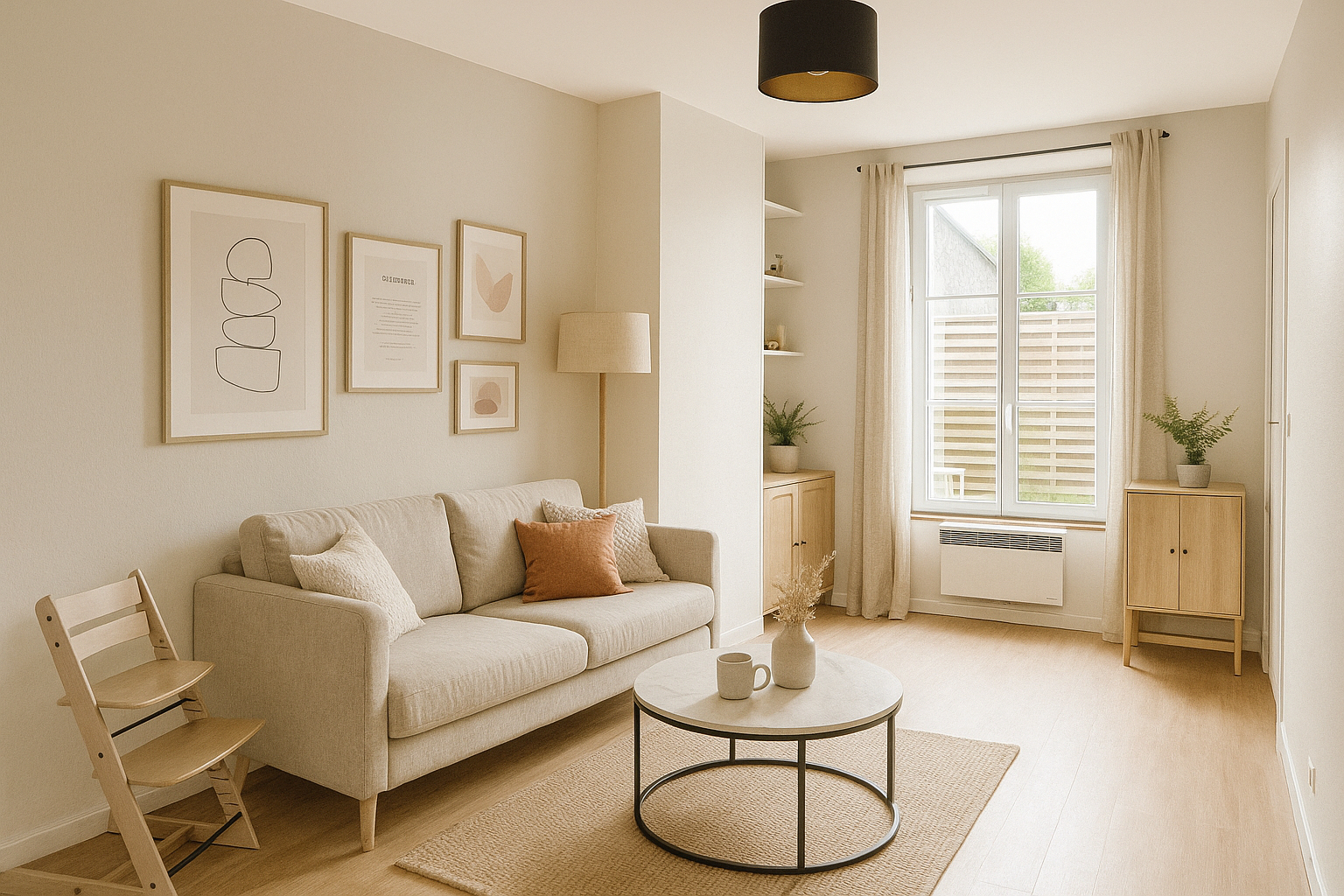 Un deux pièces en rez-de-chaussée sur jardin composé d'une pièce principale avec coin cuisine, une chambre et d'une salle d'eau avec wc.