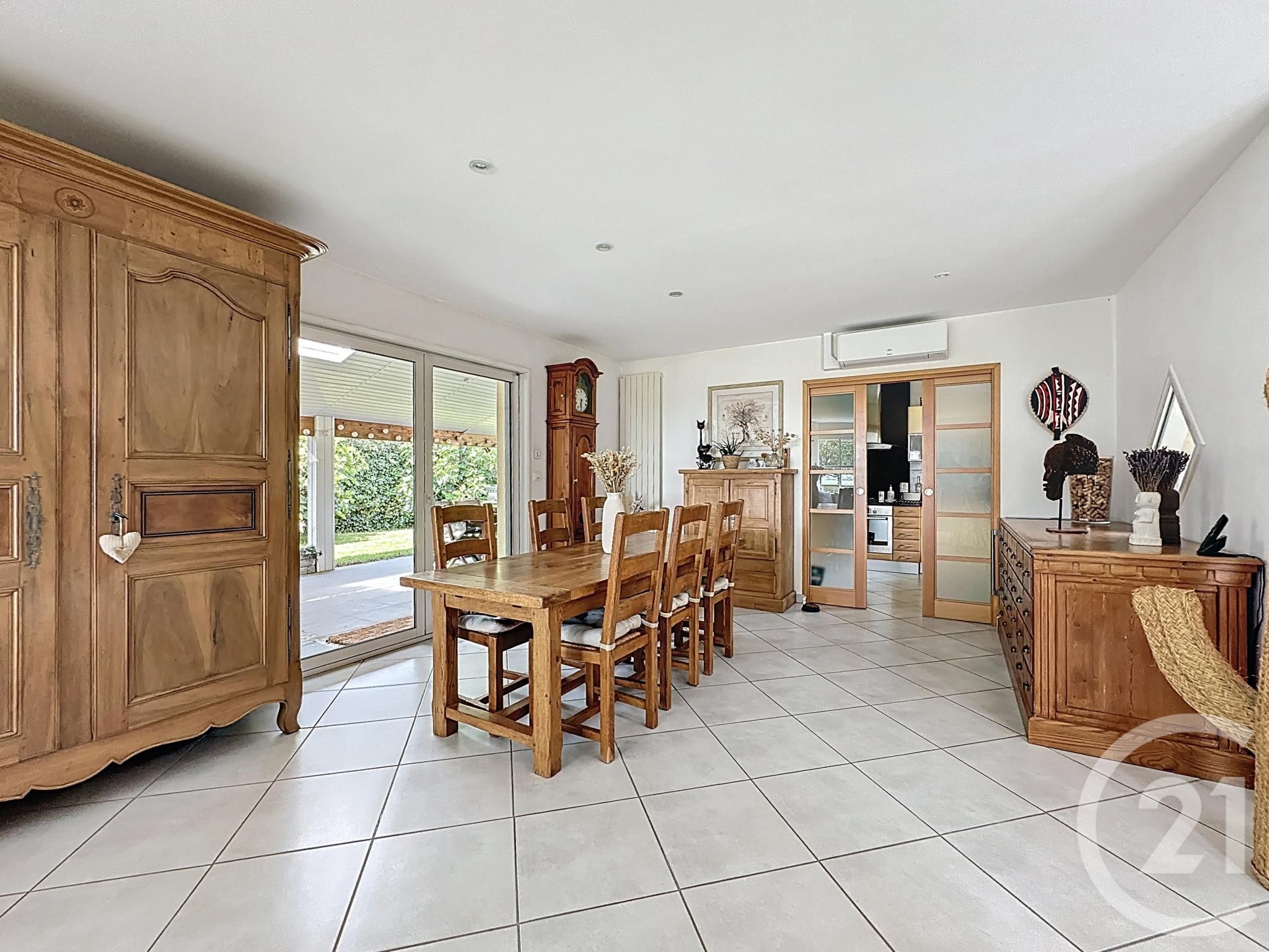 Elle comprend une entrée lumineuse ouvrant sur un vaste séjour salon, une cuisine entièrement équipée, 3 chambres dont une splendide suite parentale de 27 m² avec dressing et sa salle d'eau privative, une salle de bain, un deuxième wc indépendant, une buanderie. Au sous-sol, une salle télé ou salle de jeux, un cellier et une cave. Une véranda d'environ 20 m² relie la maison au double garage équipé de portes motorisées et d'une mezzanine pour stockage.