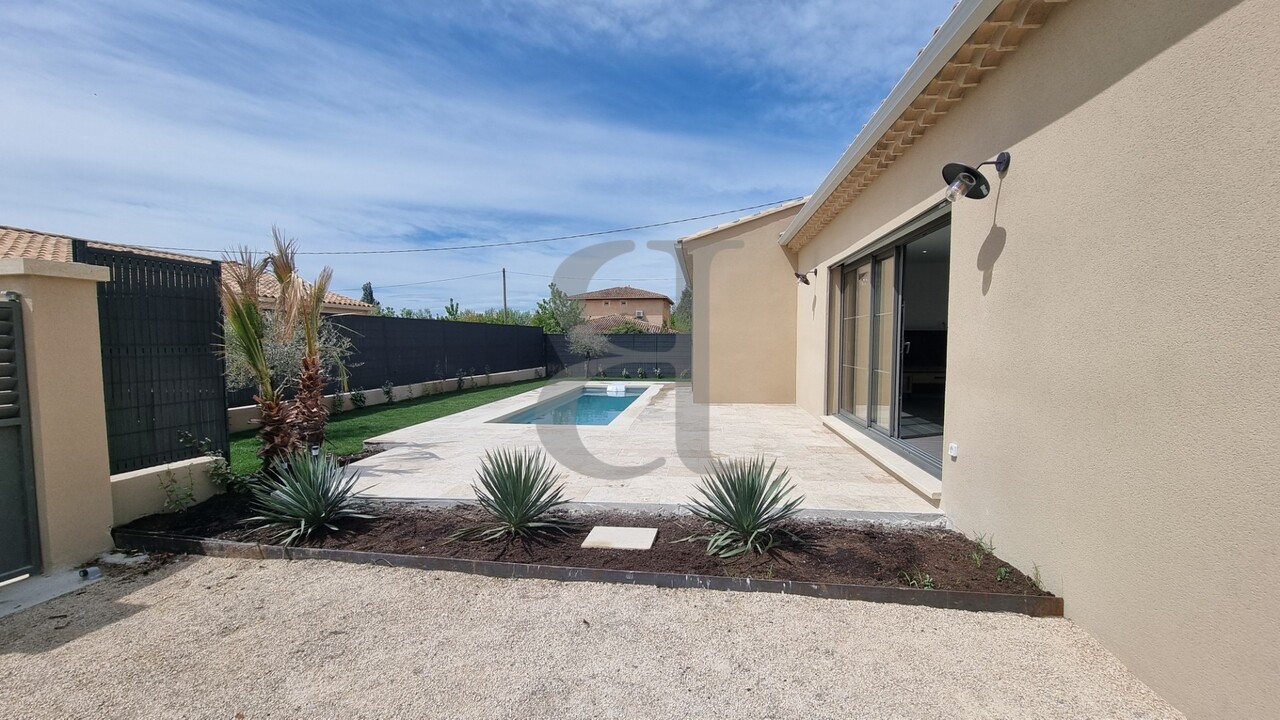 Découvrez cette belle villa de 136 m² de plain-pied avec piscine et garage tout juste terminée, offrant des prestations de qualité et vendue avec sa cuisine équipée.