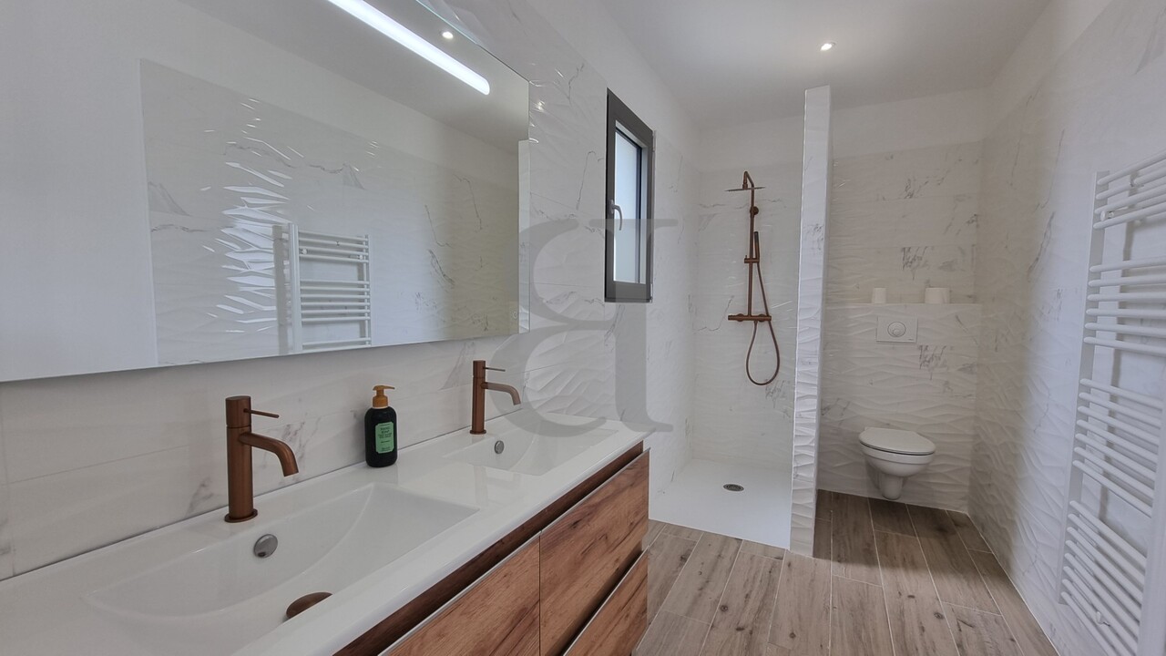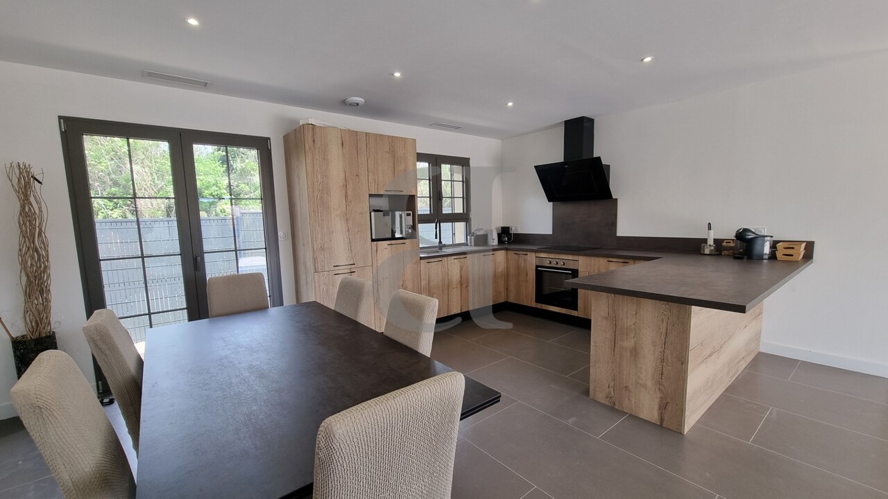 Les prestations sont modernes et de qualité, avec un mode de chauffage réversible gainable, de très belles menuiseries, portail et porte de garage automatiques, une cuisine contemporaine, n'hésitez pas à venir la visiter.
