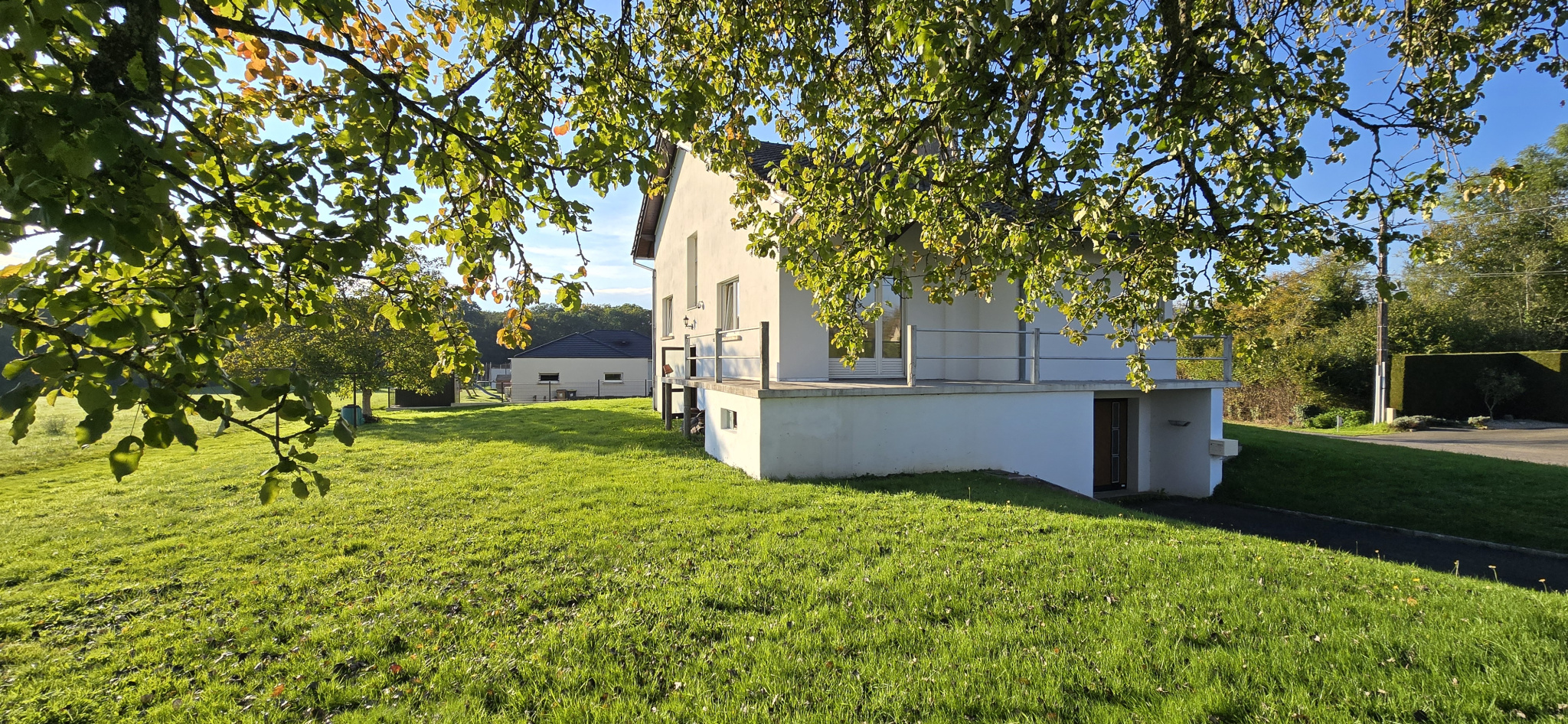 A l'extérieur : joli terrain avec vue dégagée sur la nature.