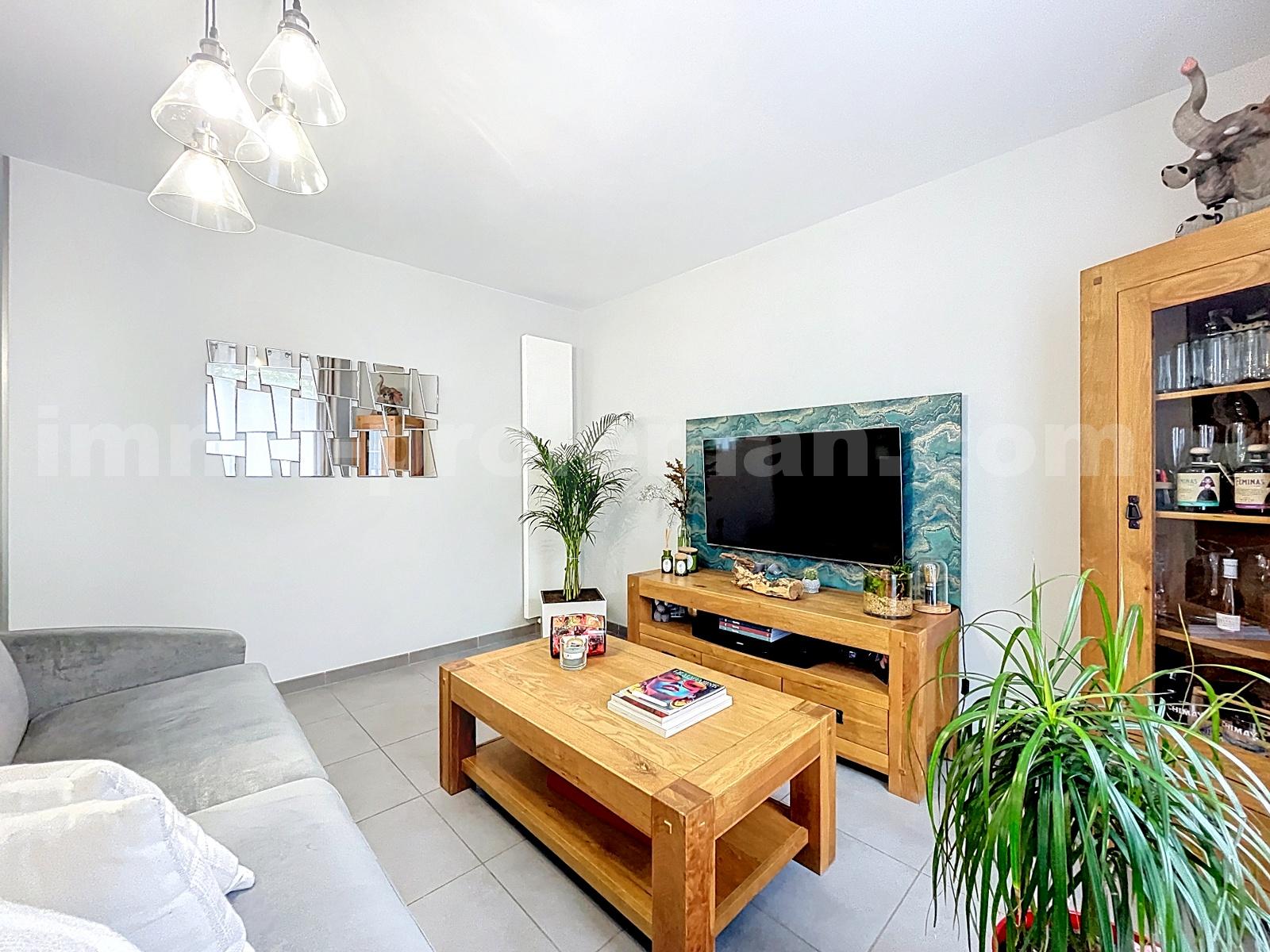 L'entrée s'ouvre sur un couloir avec un cellier pratique, qui mène à une pièce de vie lumineuse et fonctionnelle, comprenant une cuisine ouverte entièrement équipée et un séjour convivial. L'ensemble donne accès à une grande terrasse exposée S/E offrant un ensoleillement matinal.