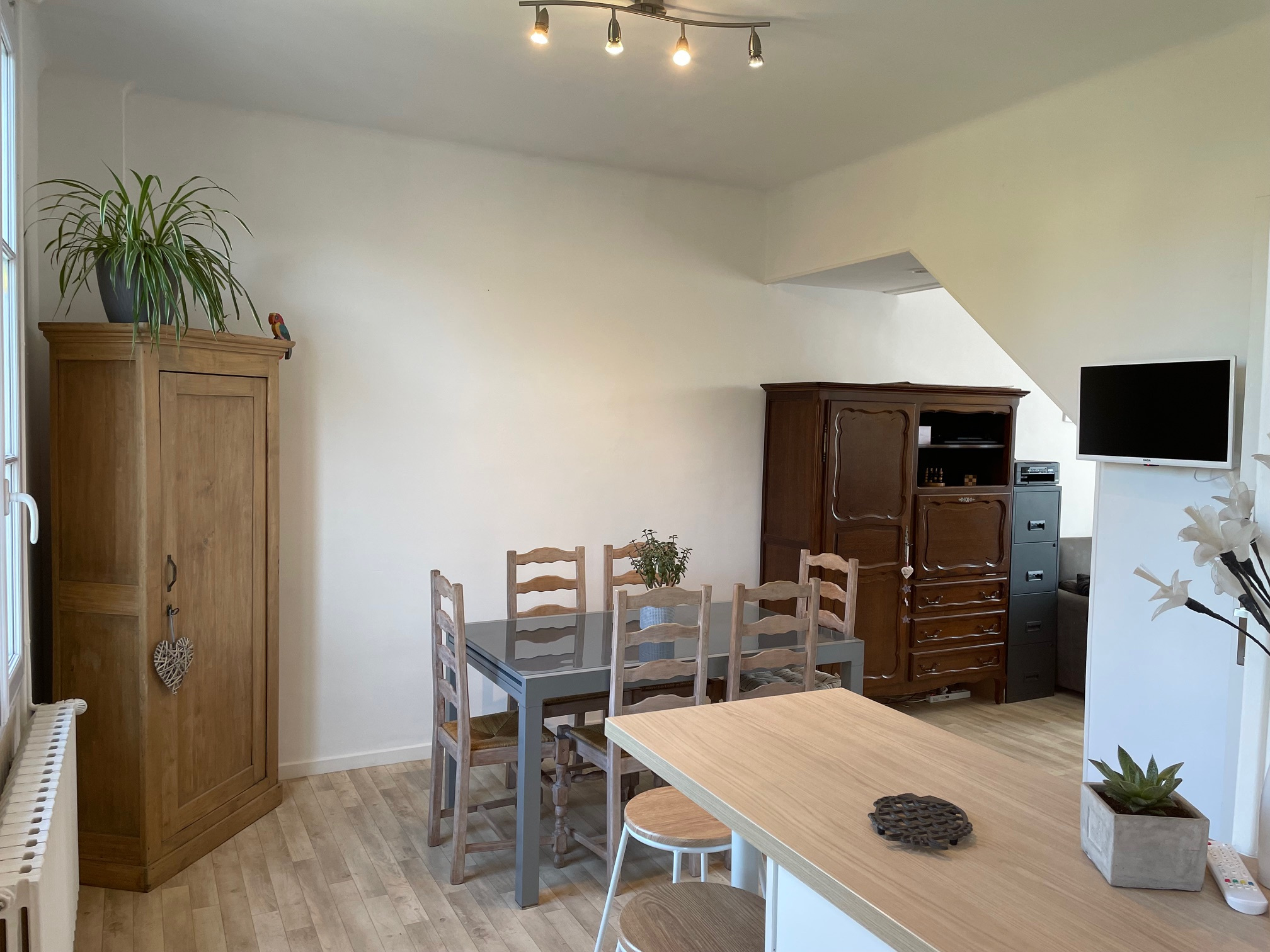 EN EXCLUSIVITÉ - Votre Agence JAYER & DUMAS Transactions vous propose cette jolie maison mitoyenne d'environ 64 m2, comprenant de plain-pied : hall d'entrée, cuisine équipée ouverte sur séjour-salon, salle d'eau, WC et petite véranda -