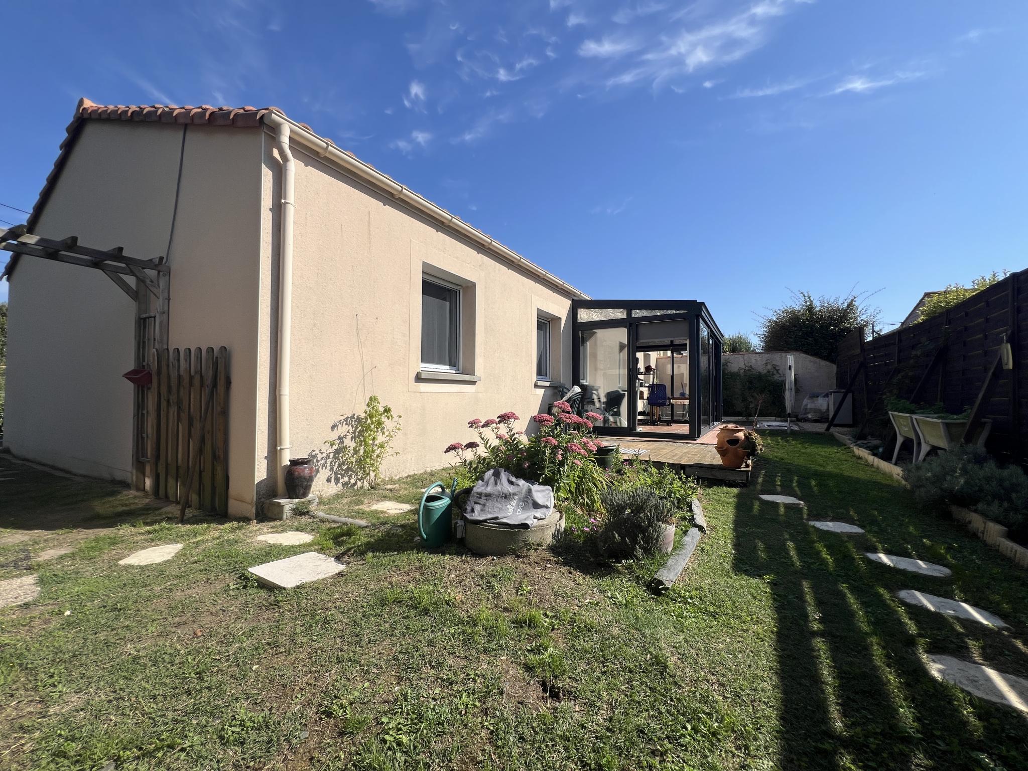 ENTRE GORGES ET LE PALLET 44190 À vendre : maison de plain-pied de 81 m2 avec véranda, 3 chambres et garage, sur une parcelle de 484 m2 au coeur d'un village paisible. Réf. : 1503 JM Fonctionnelle et lumineuse, cette maison à vendre entre Gorges et Le Pallet dispose d'une cuisine aménagée et équipée, ouverte sur un salon-séjour chaleureux avec poêle à granulés. La véranda permet de profiter de l'extérieur toute l'année. L'espace nuit comprend trois chambres, une vaste salle d'eau et d'un WC séparé complet cet maison. En complément, vous bénéficierez d'une production d'eau chaude solaire, d'un garage fonctionnel, d'un cabanon de rangement et d'un terrain clos avec portail électrique. Une mare vient également agrémenter cet environnement calme et agréable, idéal pour une vie de famille. Ses atouts : Pièce de vie lumineuse avec poêle à granulés Cuisine aménagée et équipée ouverte Véranda utilisable toute l'année Production d'eau chaude solaire Garage + cabanon Terrain clos avec portail électrique Cadre verdoyant Les informations sur les risques auxquels ce bien est exposé sont disponibles sur le site Géorisques : georisques.gouv.fr Pour toute information complémentaire ou pour organiser une visite, contactez notre agence au 02.28.00.72.40 ou par e-mail : agence@cocooning-immobilier.com. Nous pouvons également vous accueillir dans nos agences COCOONING IMMOBILIER au 61 Rue des Forges à Vallet ou au 35 rue du Général Audibert à Gorges. COCOONING IMMOBILIER Achat, vente, estimation, location.
