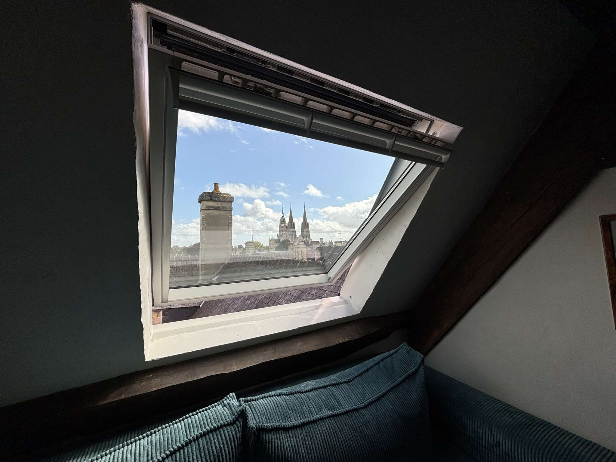 Un séjour lumineux offrant une vue imprenable sur la Cathédrale de Bayeux,