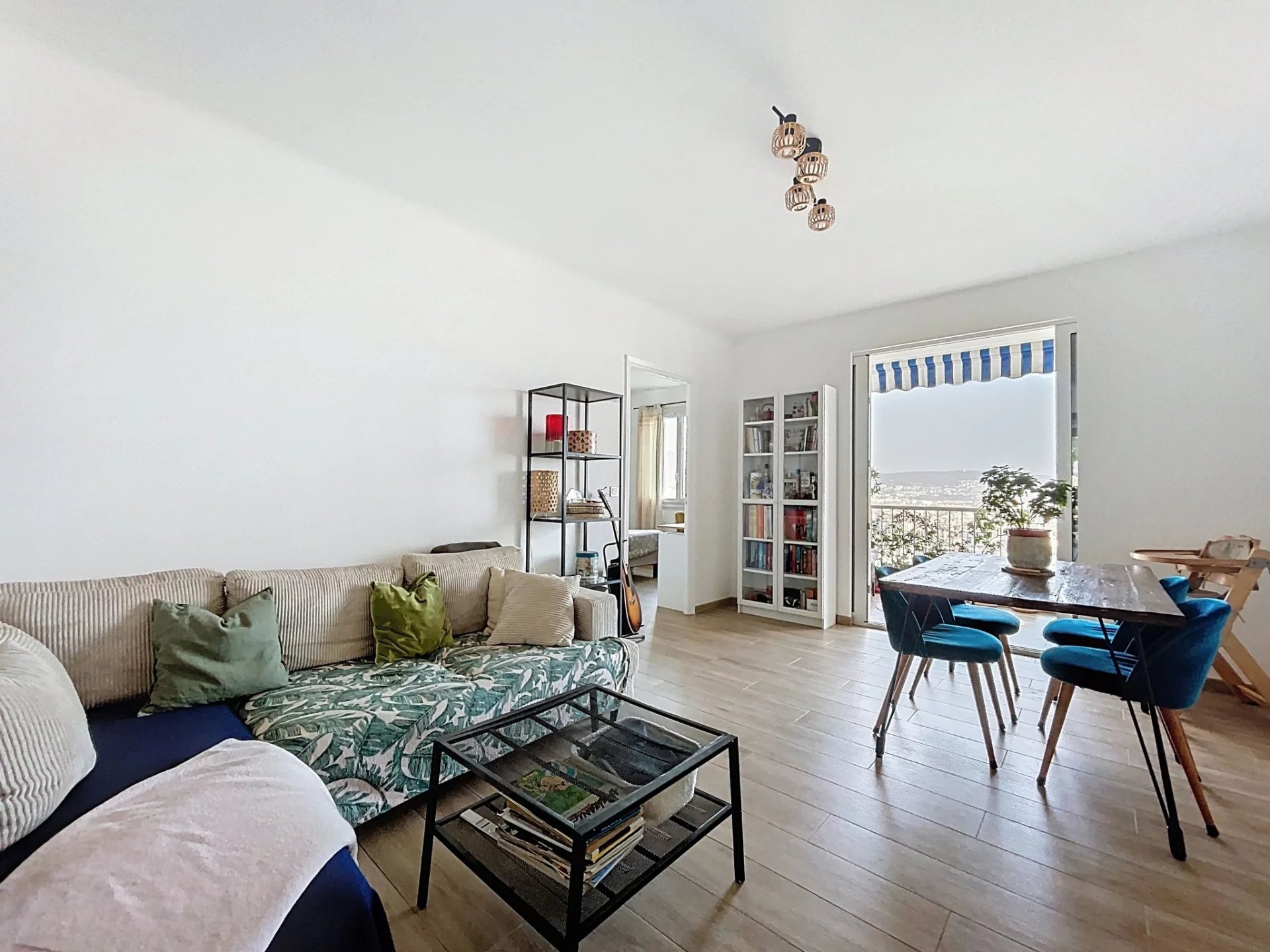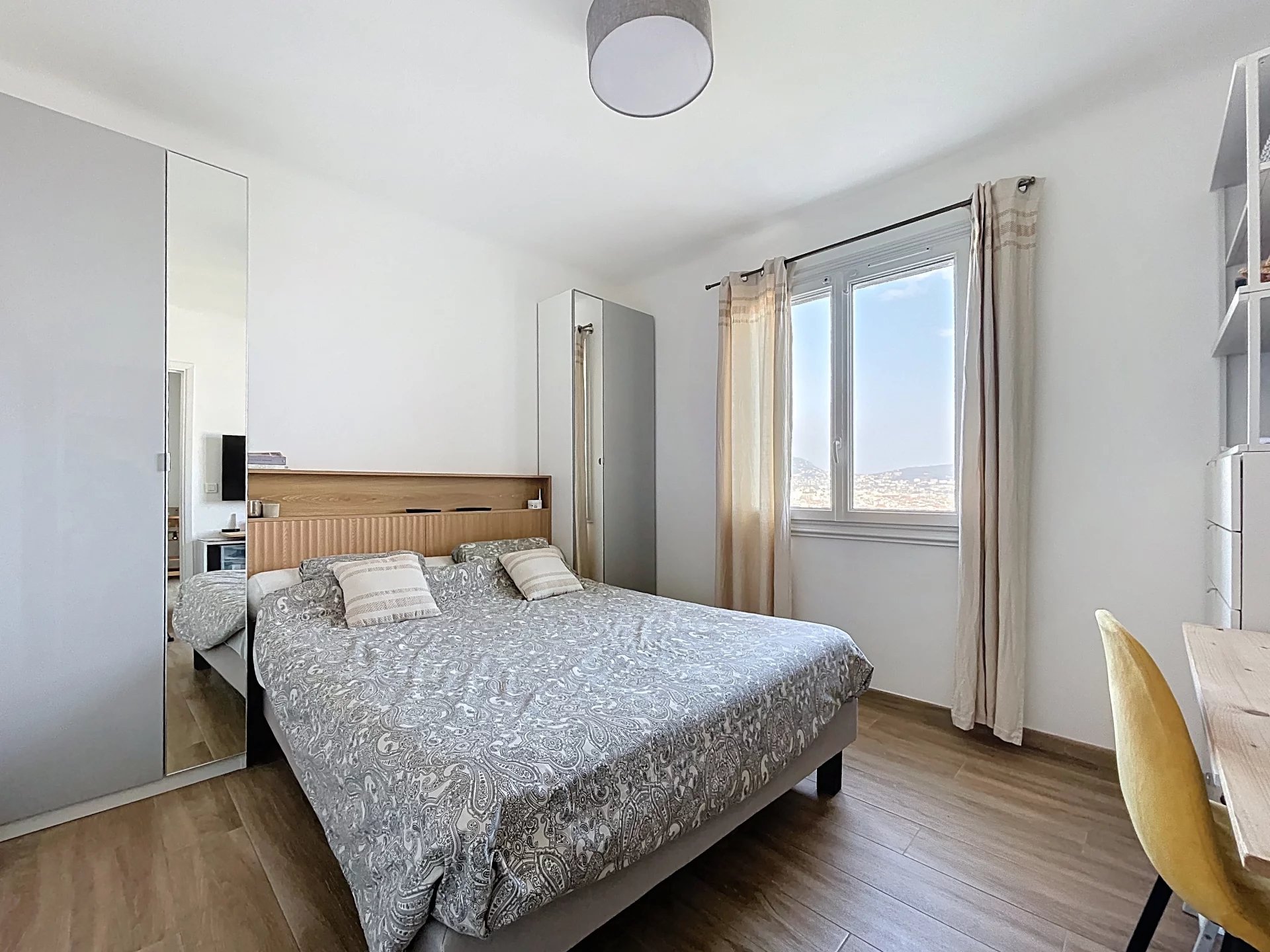 Cet appartement TRAVERSANT et CLIMATISÉ vous séduira par sa BELLE TERRASSE exposée SUD-EST offrant une VUE PANORAMIQUE sur la MER, les COLLINES et la ville; idéale pour admirer le soleil se lever sur la mer.