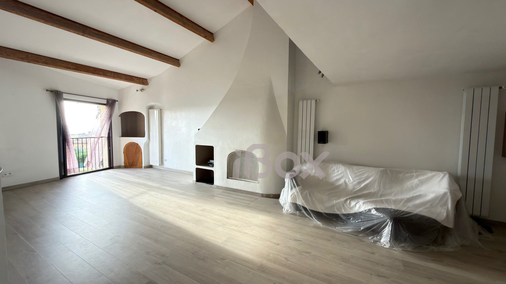 Une belle entrée vous accueille et mène à une agréable pièce à vivre cathédrale disposant à ce jour d'une cheminée fonctionnelle, avec cuisine ouverte, le tout donnant sur une terrasse d'une profondeur de 2.5m et d'une largeur de 3.5m avec une vue mer imprenable.