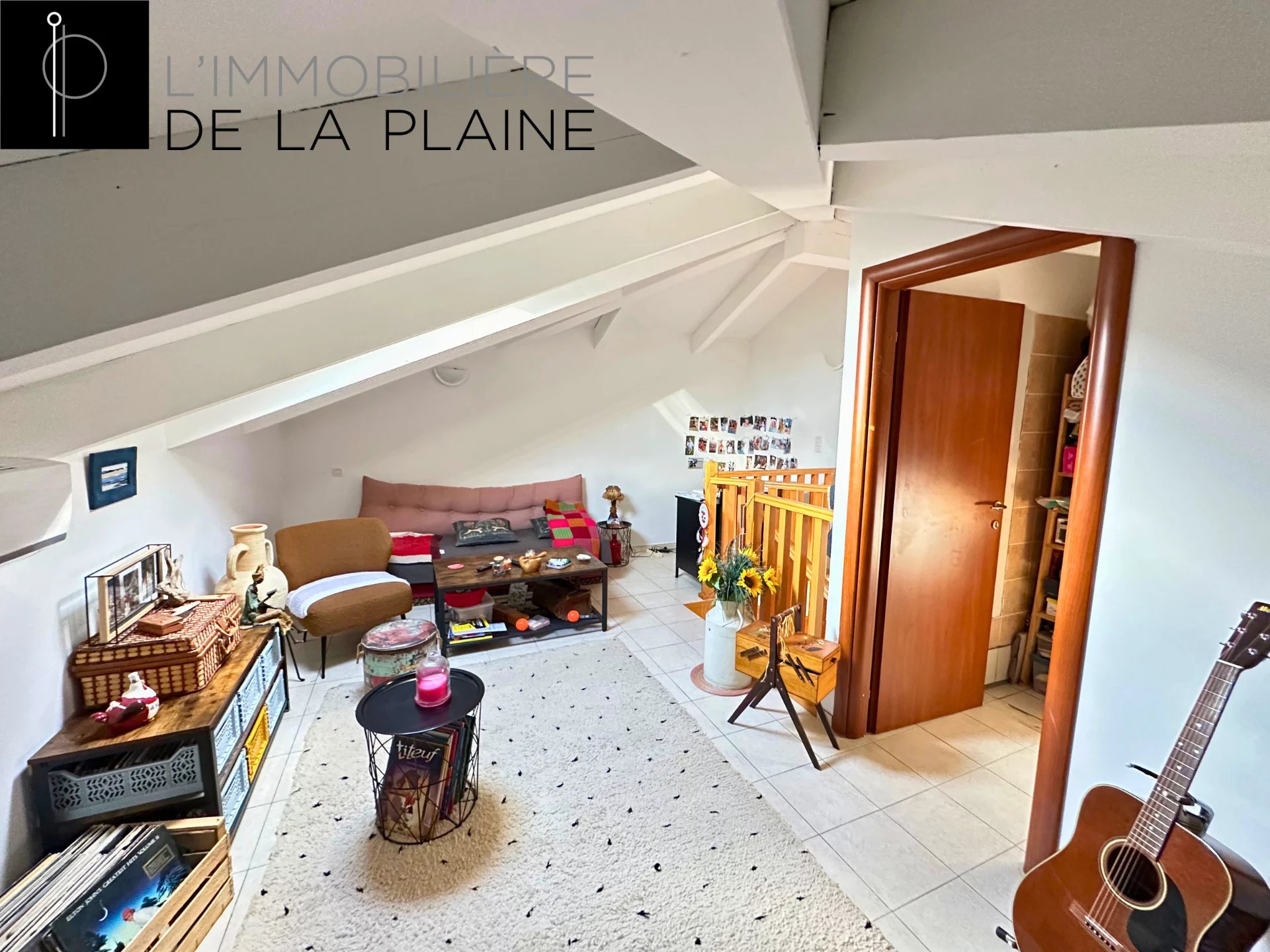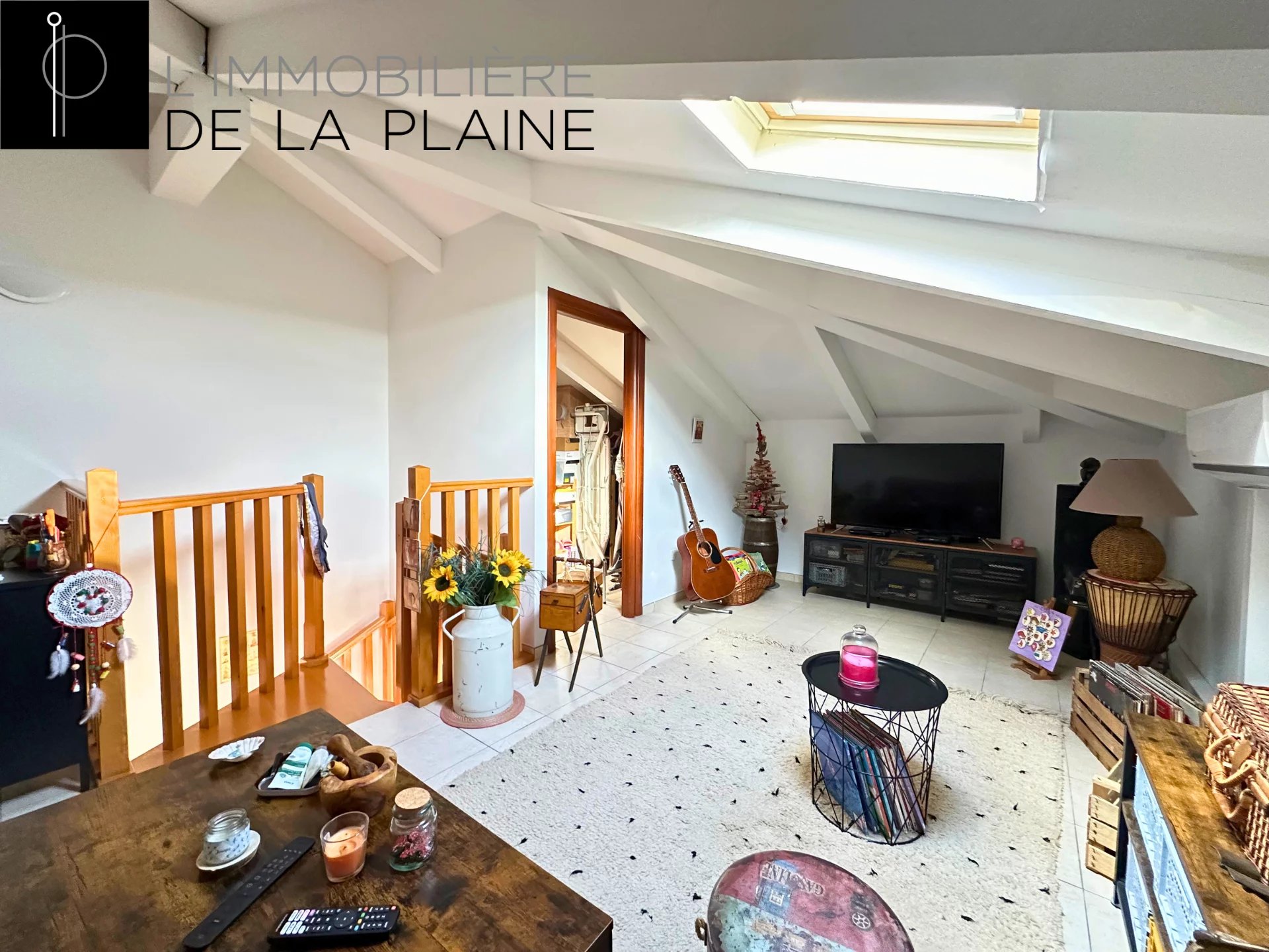 A l'étage se trouve une autre pièce aménagée actuellement en séjour et en dressing. Celle-ci dispose des arrivées d'eau nécessaires et offre la possibilité d'y recréer une salle de bain et une autre chambre selon vos besoins.
