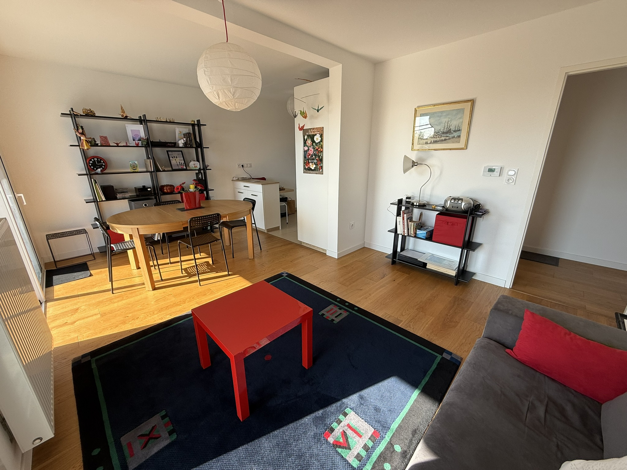 APPARTEMENT sur sols parquet chêne massif, équipé d'une terrasse (7,54m2) et un garage (17,30m2) en sous-sol, disposant de :