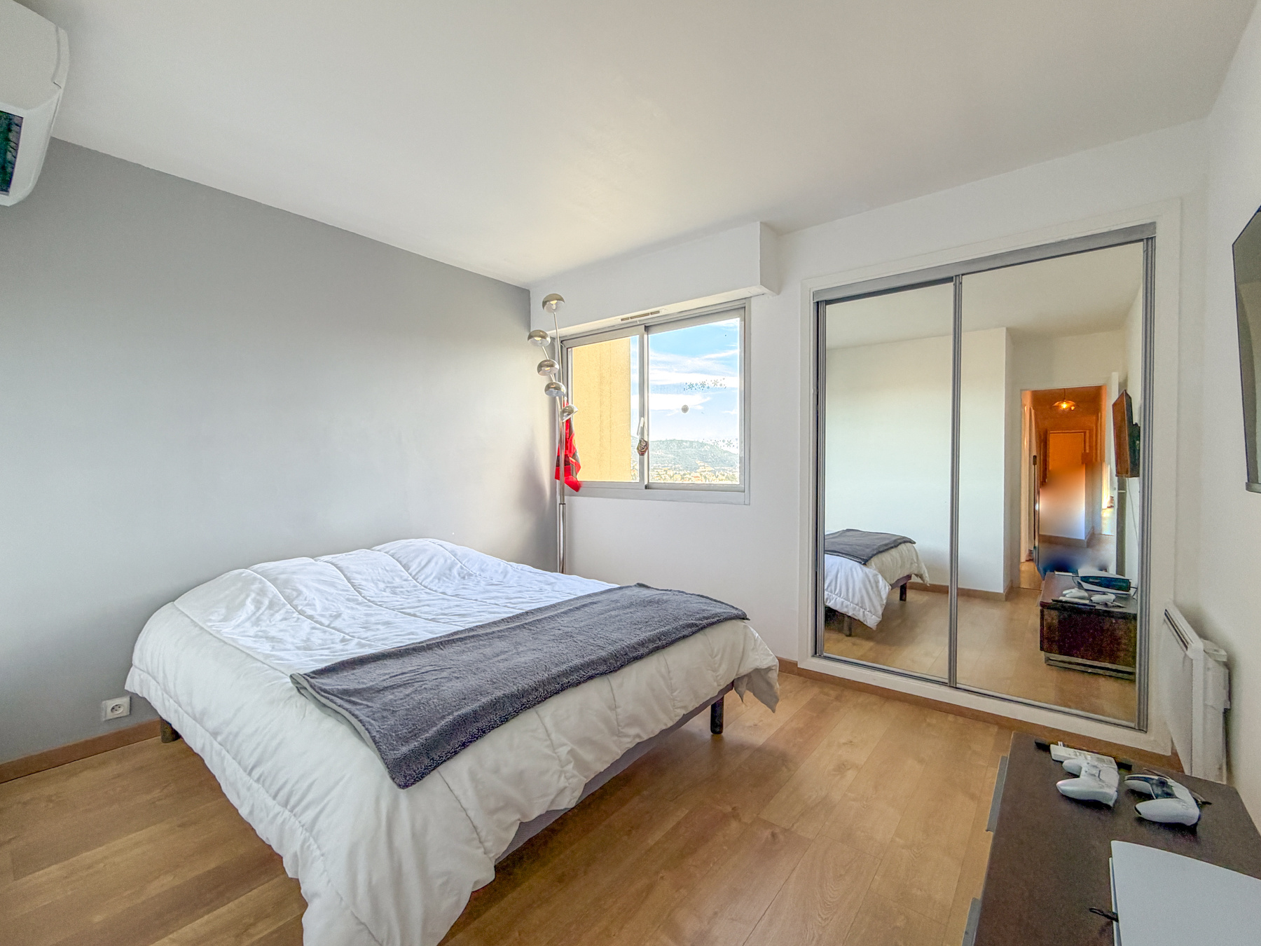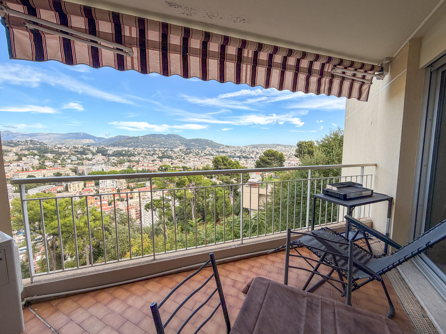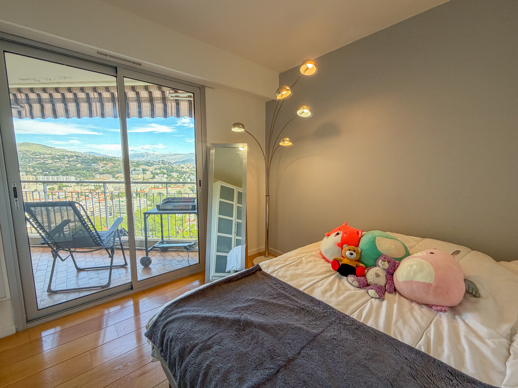 EXCLUSIVITE : Sur la colline de Pessicart, dans une copropriété au calme avec piscine et stationnement collectif, bel appartement 3/4 pièces de 81 m2 avec terrasse de 11 m2 et très belle vue panoramique. En parfait état, il dispose d'un beau séjour, d'une cuisine récente, bureau, 2 chambres avec placard, salle de bains récente avec WC, buanderie pouvant devenir 2ème salle d'eau, nombreux placard. L'appartement dispose de fenêtres double vitrage, climatisation, et parquet dans le séjour, les 2 chambres et les dégagements. Les atouts : aucun travaux à prévoir, calme, vue, stationnement collectif dans la copropriété, piscine. Économe avec son excellent DPE : B