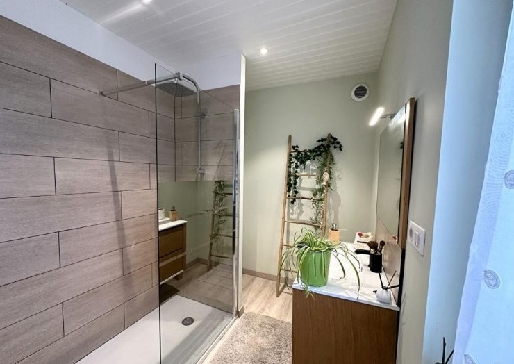 4 chambres dont une au RdC avec salle d'eau douche à l'italienne. WC. A l'étage 3 chambres et salle d'eau comprenant douche italienne ET baignoire, WC