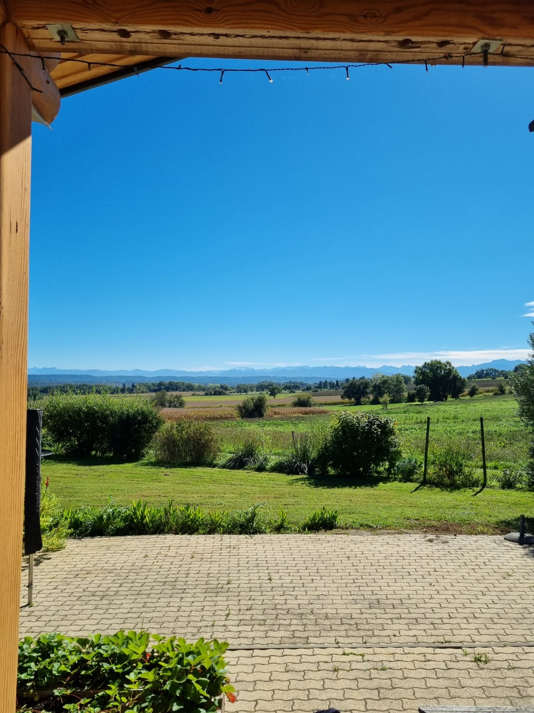 Cette belle maison en bois est située juste à l'extérieur d'un petit village et en face de la maison, il y a une vue permanente et dégagée sur la campagne vallonnée et les Pyrénées.