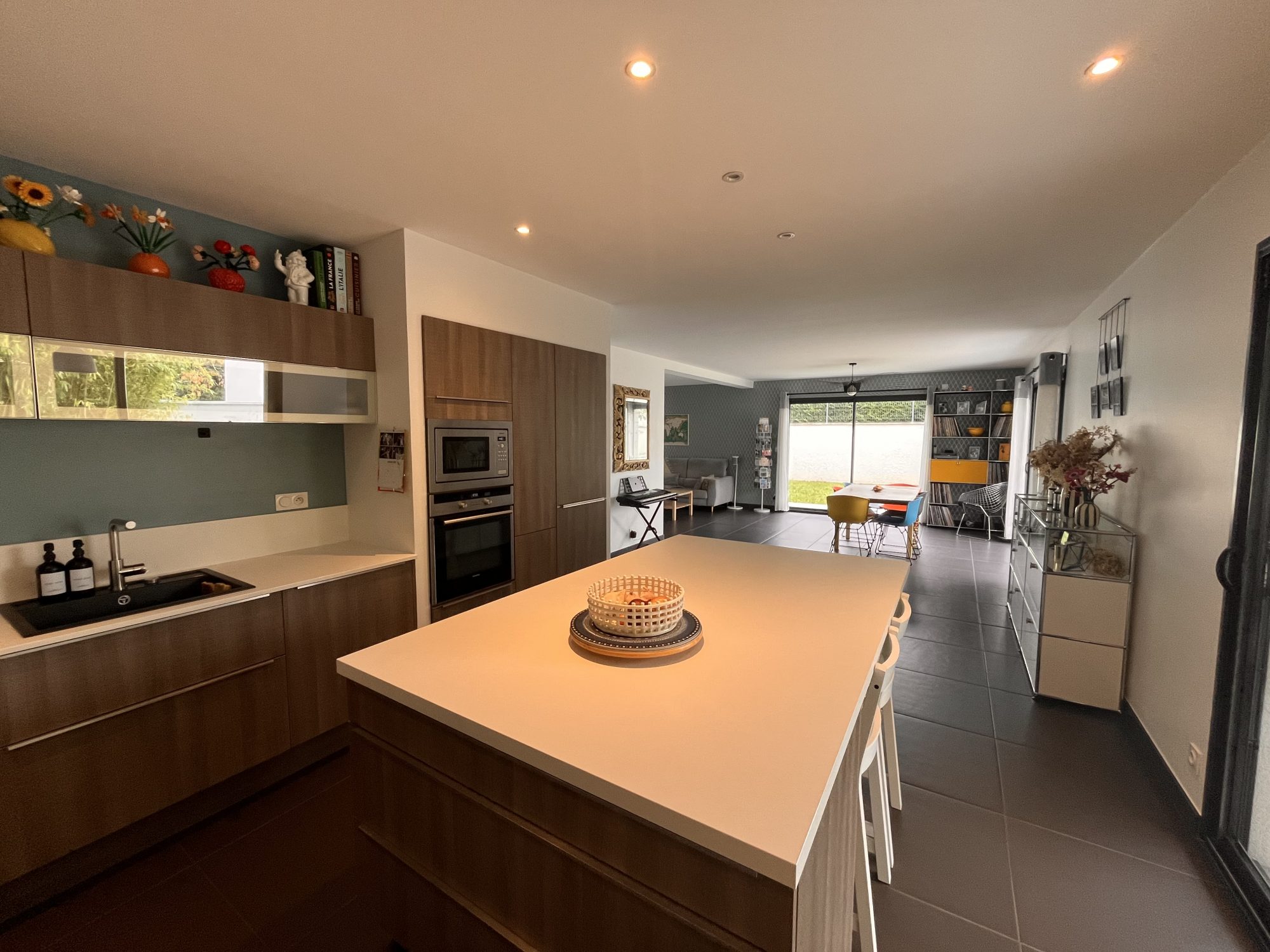 Au rez-de-chaussée, vous découvrirez une superbe pièce de vie lumineuse, sans vis-à-vis, ouverte sur une cuisine moderne, entièrement aménagée et équipée.