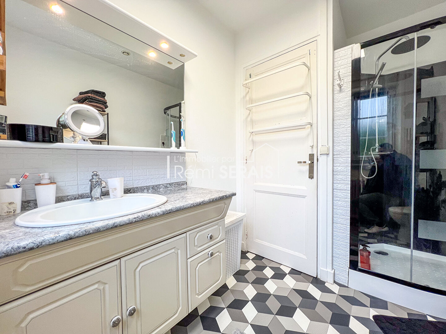 À l'étage : deux chambres lumineuses, dont une spacieuse de 14 m², un dressing et une salle d'eau avec WC.