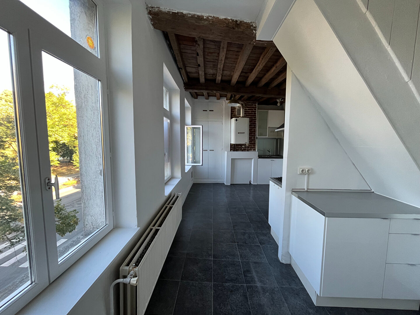 VIEUX LILLE - Façade de l'Esplanade. Charmant type 4 en duplex au deuxième et troisième étages, comprenant une entrée, une grande cuisine séparée, un beau séjour de 20m2, une chambre et d'une salle de bain avec WC, au deuxième étage deux belles chambres et espace buanderie. Appartement lumineux ayant conservé le cachet de l'ancien. Petits travaux à prévoir.