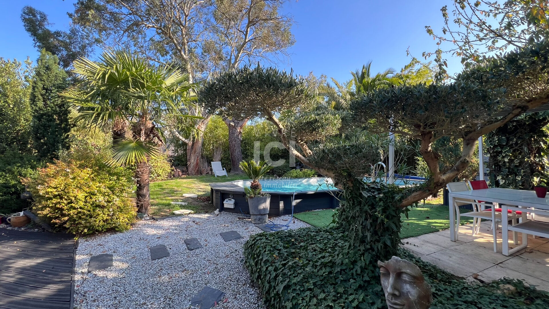 Profitez d'un jardin paysager et arboré d'environ 800 m², véritable havre de paix, équipé pour la détente et la convivialité :