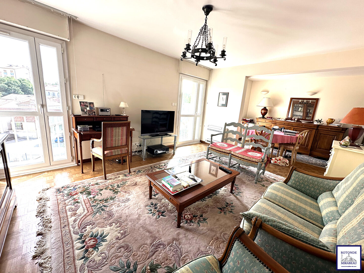 A vendre en centre-ville d'Aix-en-Provence - Proche de la Rotonde , dans une résidence fermée, appartement 3/4 Pièces traversant, en étage élevé avec ascenseur, comprenant : Une entrée avec vestiaire-dressing, un double séjour climatisé, une cuisine indépendante aménagée et équipée, deux chambres dont une climatisée, une salle d'eau, un wc indépendant et 2 balcons. Vues dégagées, prestations récentes, double vitrage PVC et volets électriques. Cave au sous-sol et parking collectif fermé. DPE CLASSE ENERGIE B - CLASSE CLIMAT A. M 78348 - AGENCE ROTONDE MIRABEAU, Agence Immobilière 4 Cours Mirabeau, 13100 - AIX EN PROVENCE. Tel : 04 42 91 27 00