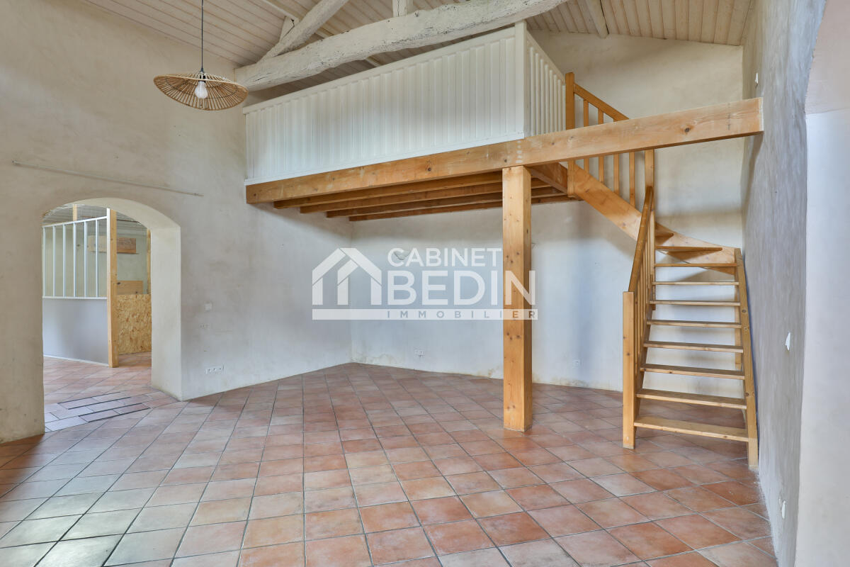 Exclusivité CABINET BEDIN - Plain pied rénové avec charme sur Léogeats. Dans le bourg paisible et bucolique de Léogeats, à moins de 5 km d?une supérette et à 12 km de l?A62, découvrez ce plain-pied T2 de 113 m² rénové en alliant confort moderne et belles prestations anciennes.