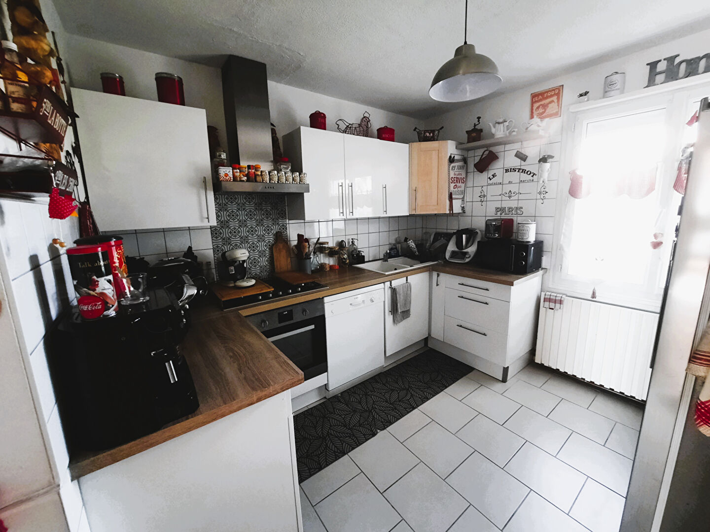 Jolie maison rénovée offrant au rez-de-chaussée, une entrée avec rangements, un wc indépendant, une cuisine indépendante, une buanderie/cellier, une belle pièce de vie lumineuse, avec poêle à bois, ouverte sur la terrasse.