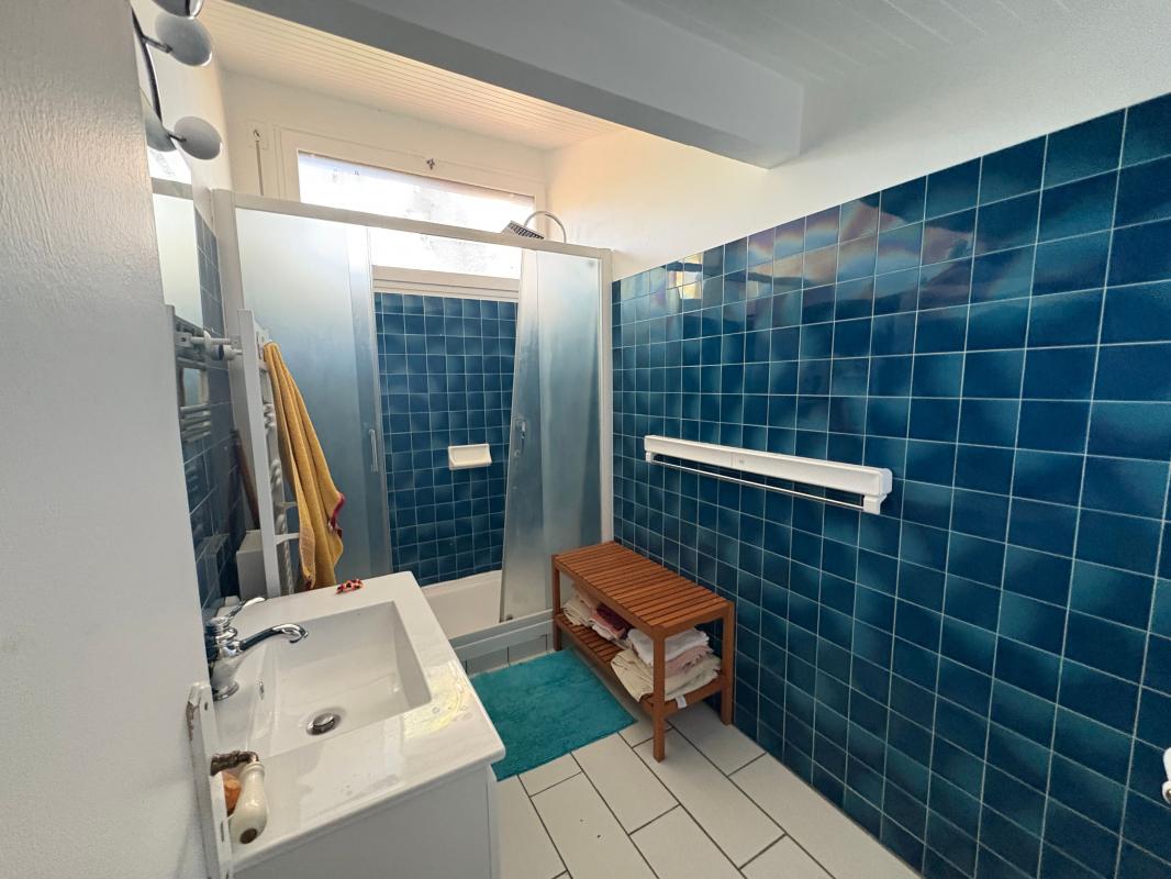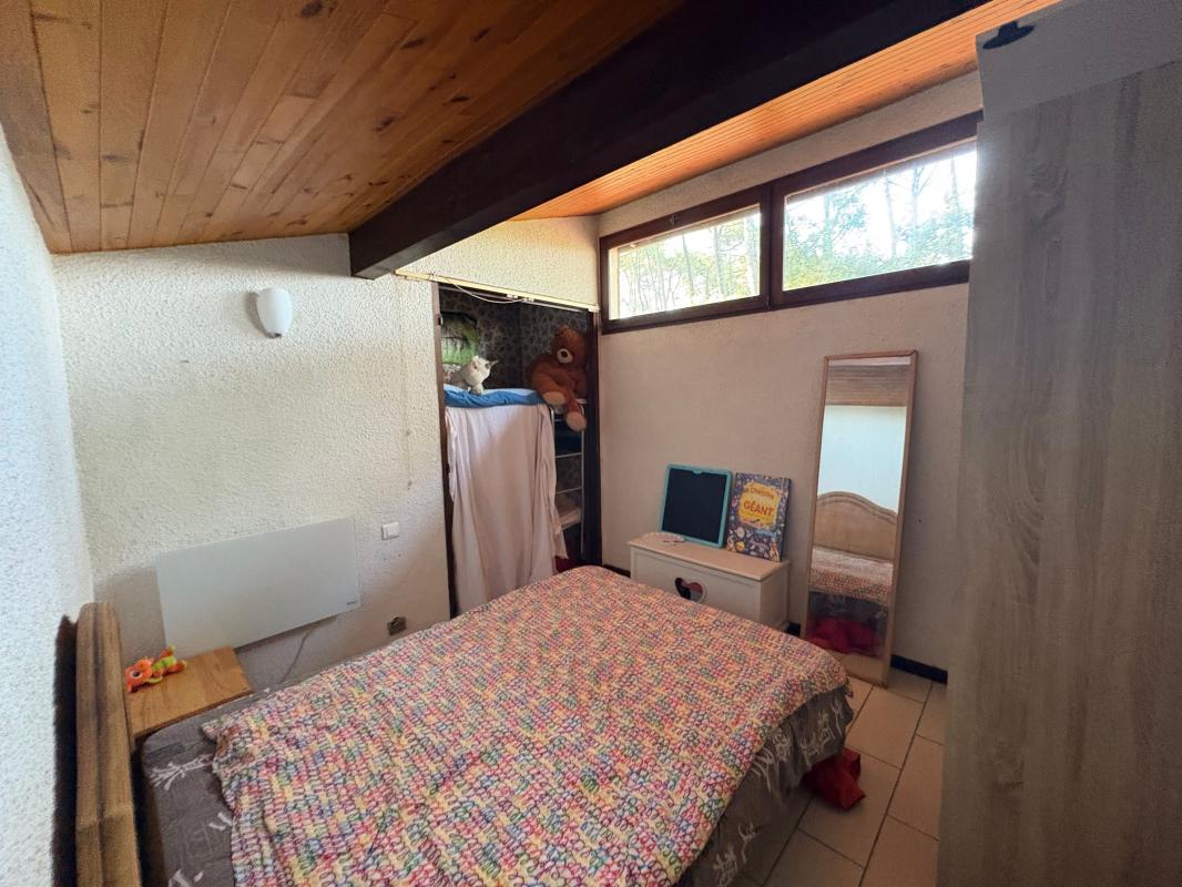 À l'étage, un dégagement mène à une chambre spacieuse avec grand placard et à une salle d'eau.