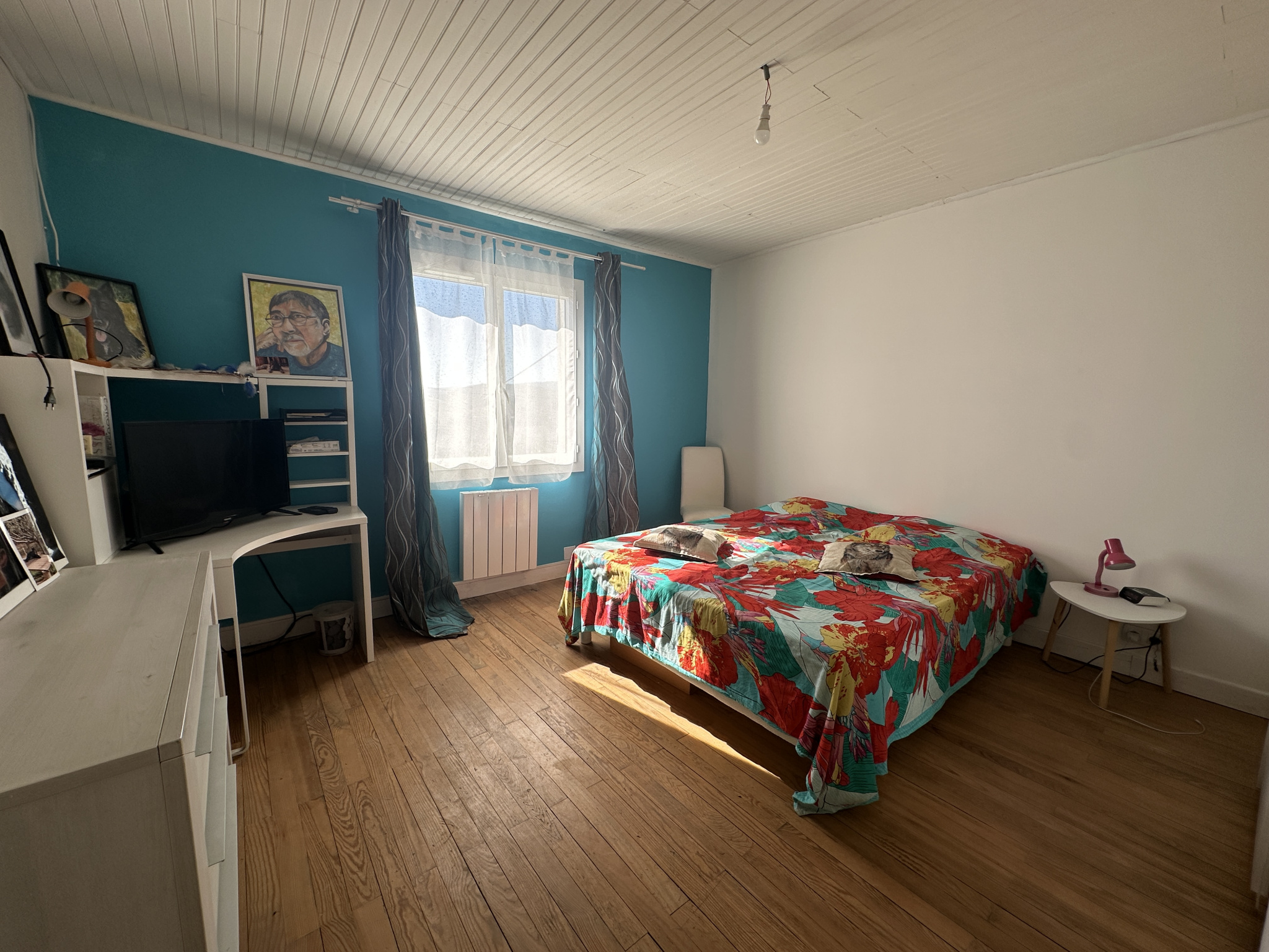 Une entrée, un séjour, trois chambres, une salle d'eau et wc indépendant. Une terrasse sud. Un garage et terrain autour de 3500 m2 clos et arboré.
