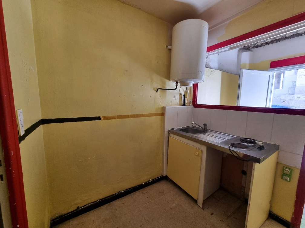 Cette maison est composée au rez-de-chaussée d'une d'un salon séjour, d'une cuisine, accès sur cour , salle d'eau et WC, au premier étage une grande chambre.