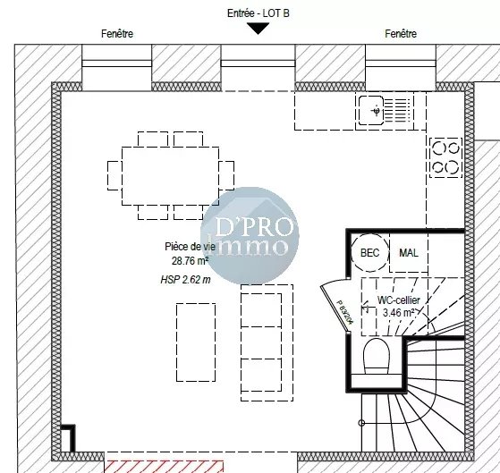- Belle pièce de vie lumineuse avec espace cuisine, cellier et WC au rez-de-chaussée