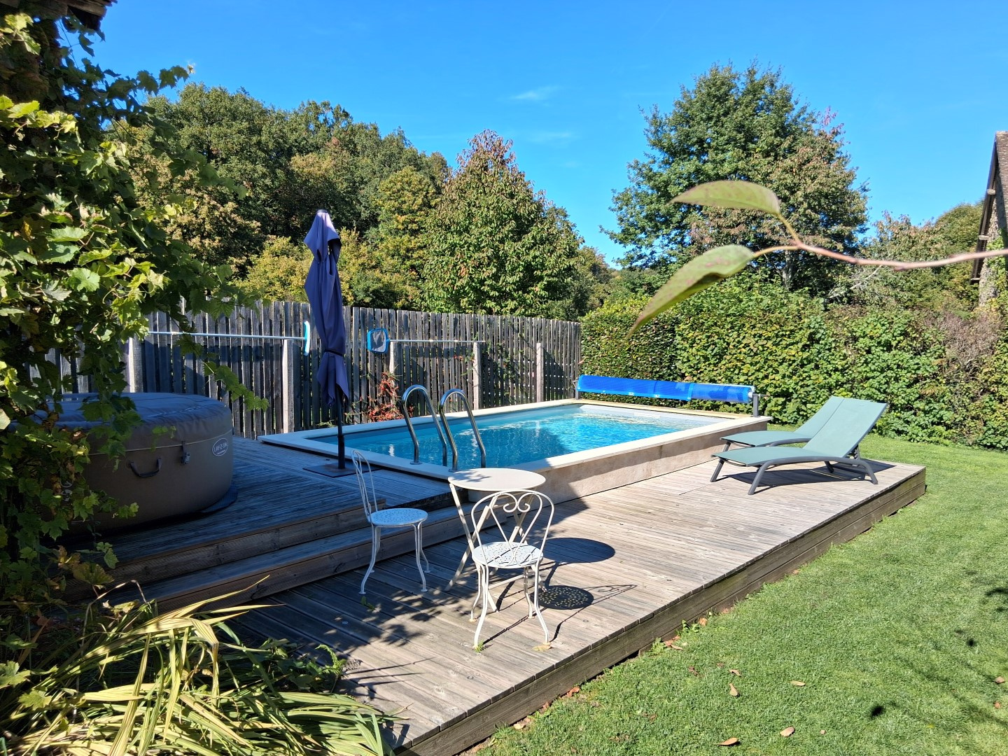 Deuxième maison ou gîte : une maison de standing comprennent au rdc ; entrée, cuisine aménagée et équipée, salle à manger, séjour avec cheminée poêle a bois, deux chambres, salle de bains avec douche et wc séparé. A l'étage deux chambres et salle d'eau wc ; au deuxième, 2 petits chambres mansardées. Surface habitable d'environ 130m2. Piscine de 5.5 x 3.5 mètres avec terrasse en bois autours de la piscine et clôture de sécurité.
