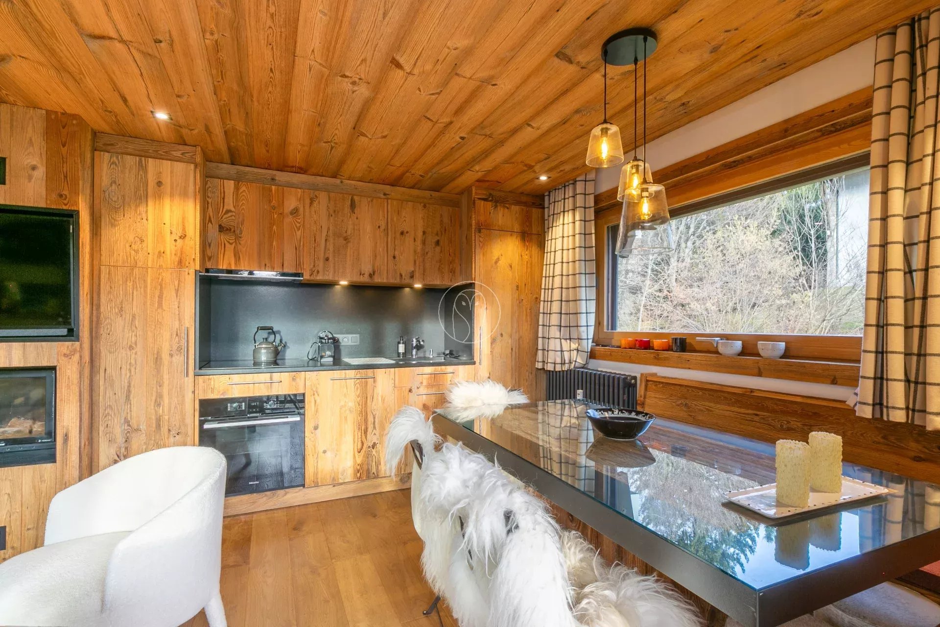 Secteur recherché de Megève à Rochebrune, à 7 minutes à pied de la place du village. Situé dans une copropriété de standing avec ascenseur, appartement entièrement rénové par une entreprise locale de renom comprenant :