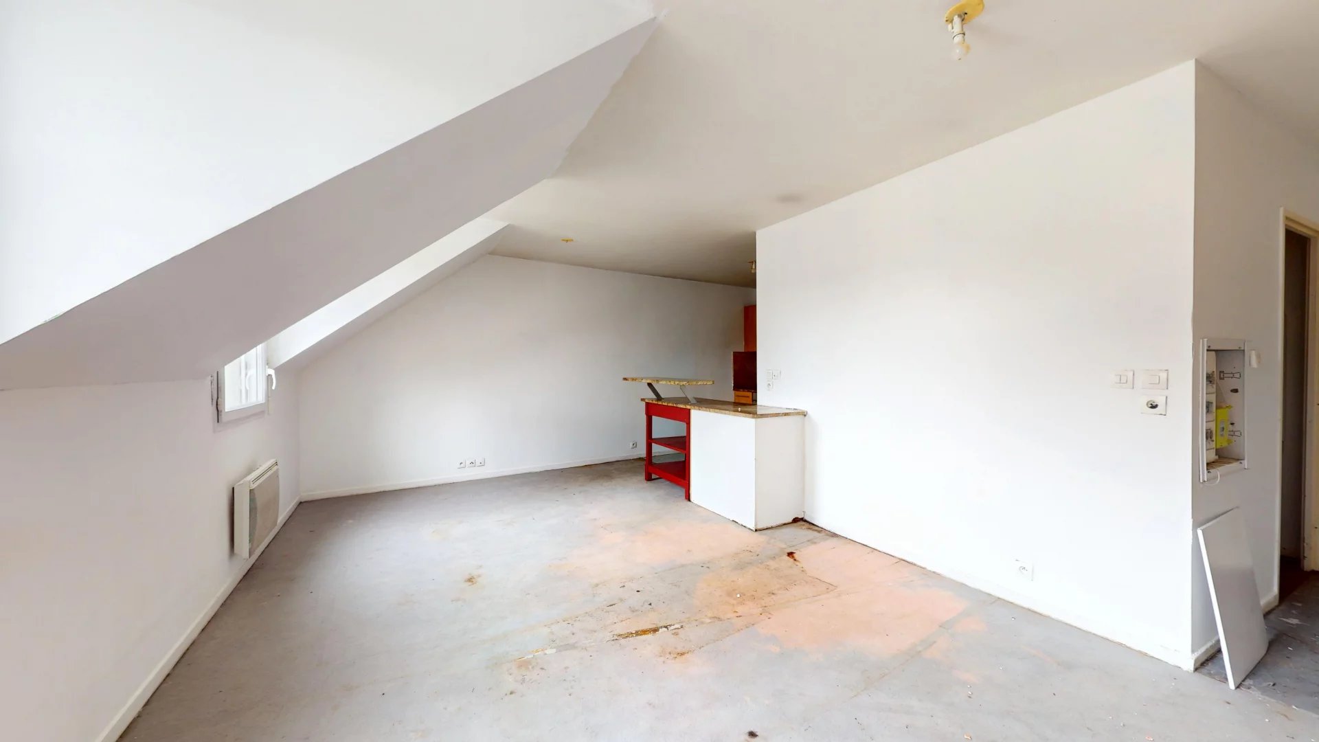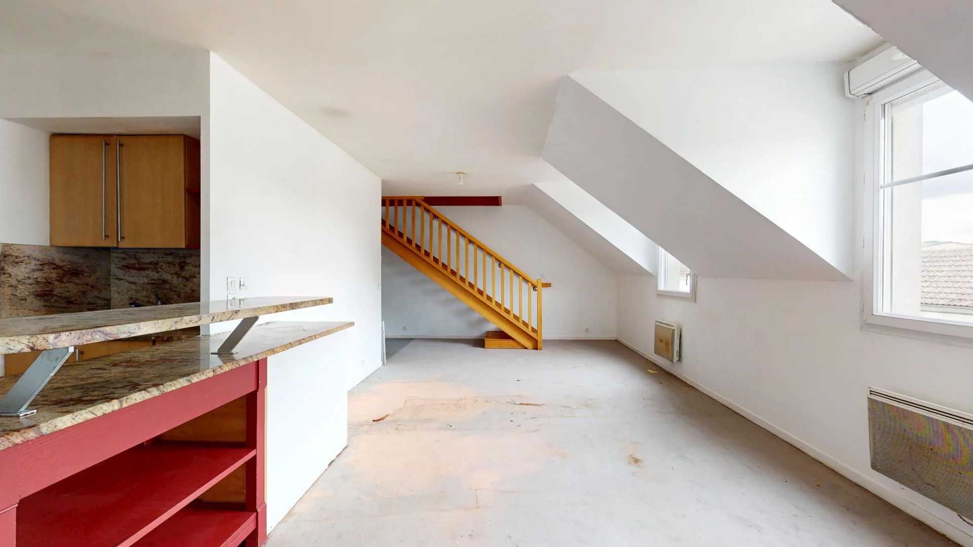 Une belle pièce de vie de près de 25 m², baignée de lumière, avec cuisine ouverte et accès à une salle d’eau avec WC.