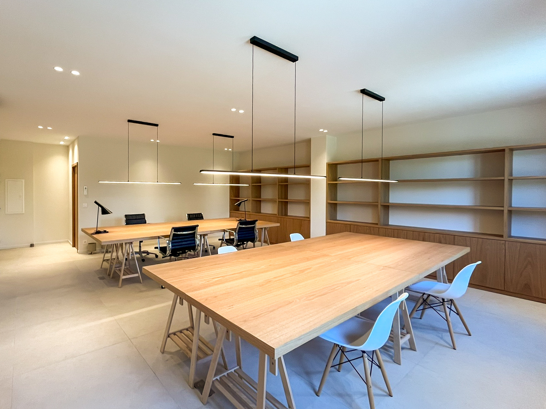 - Au 1er étage = 2 appartements T2 de 30 m2 + 2 espaces de co-working comprenant salle d'attente, sanitaires/cuisine, différents espaces de travail/ bureaux lumineux et fonctionnels. Les deux espaces d'une surface totale de 122 m2 communiquent et peuvent être reliés ou séparés selon les besoins.