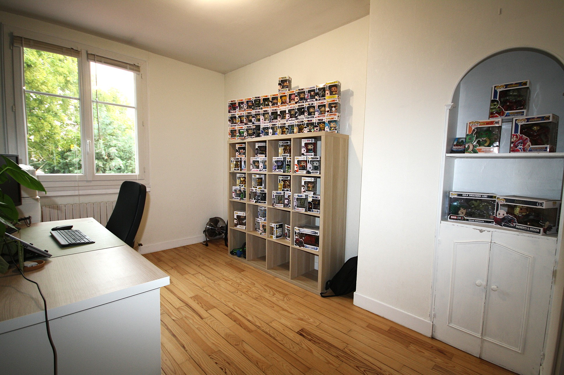 A l'étage, l'espace nuit comprend 3 chambres et un bureau. Une grande salle de bain avec fenêtre complète ce niveau.
