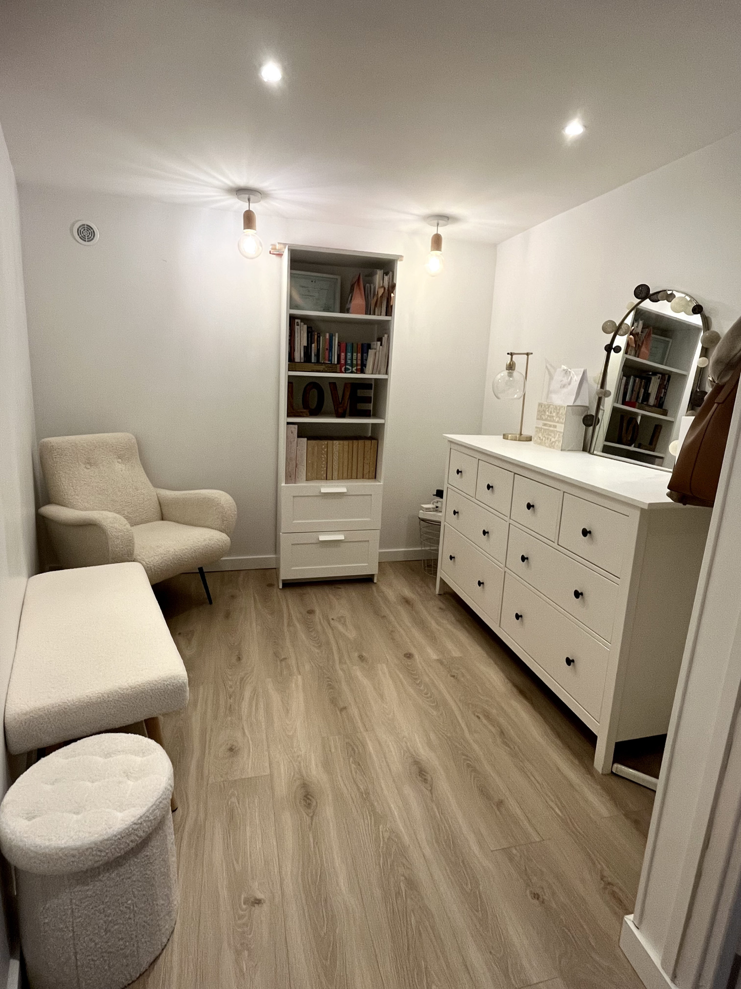 L'espace nuit, situé à l'étage inférieur, offre une spacieuse chambre intimiste, accompagnée d'une pièce attenante pouvant aisément être aménagée en bureau ou dressing selon vos besoins.
