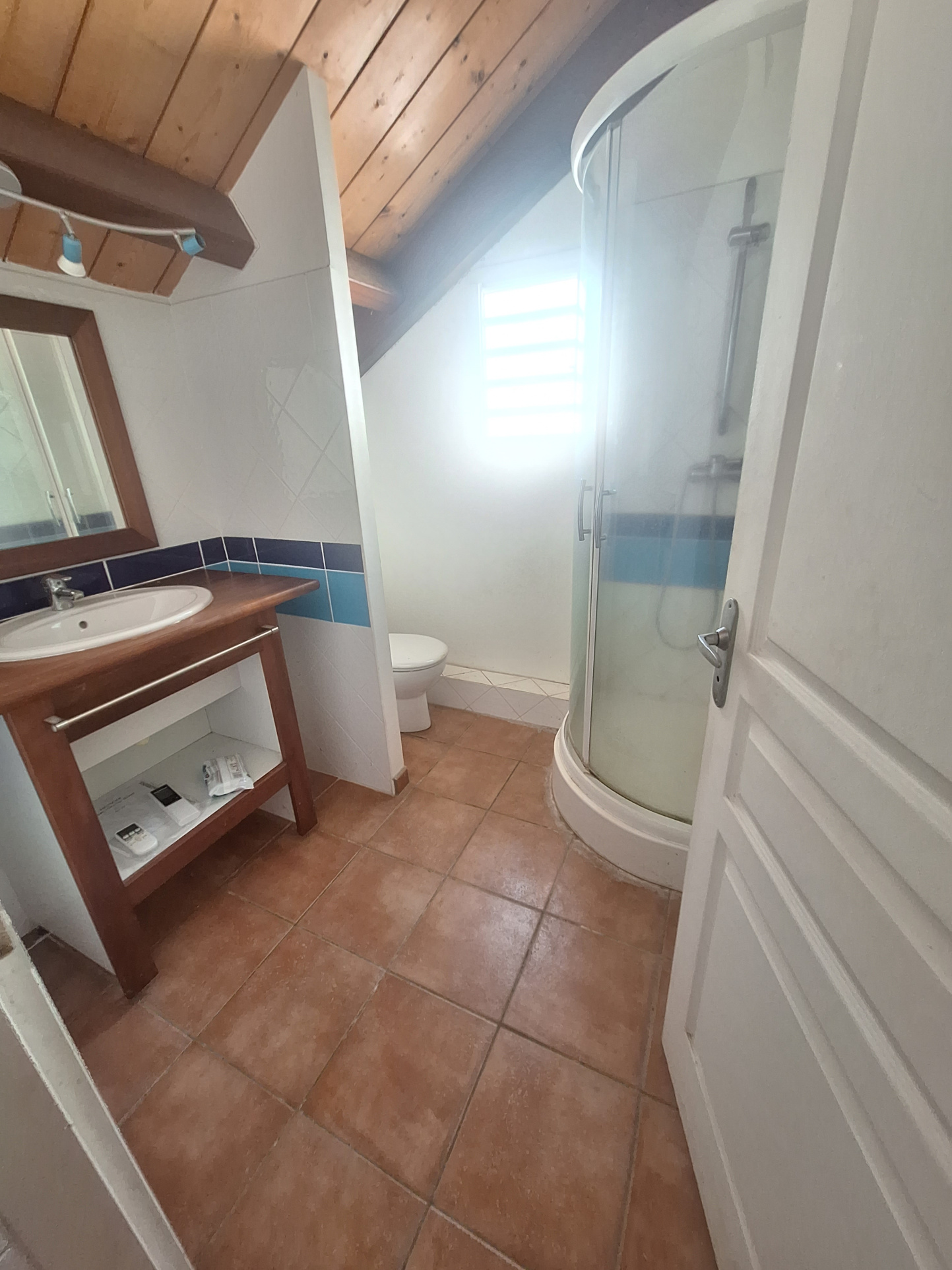 L'appartement se compose au 1er niveau d'un séjour, d'une cuisine, d'une grande chambre avec sa salle de bains, d'un wc, et d'une belle terrasse.