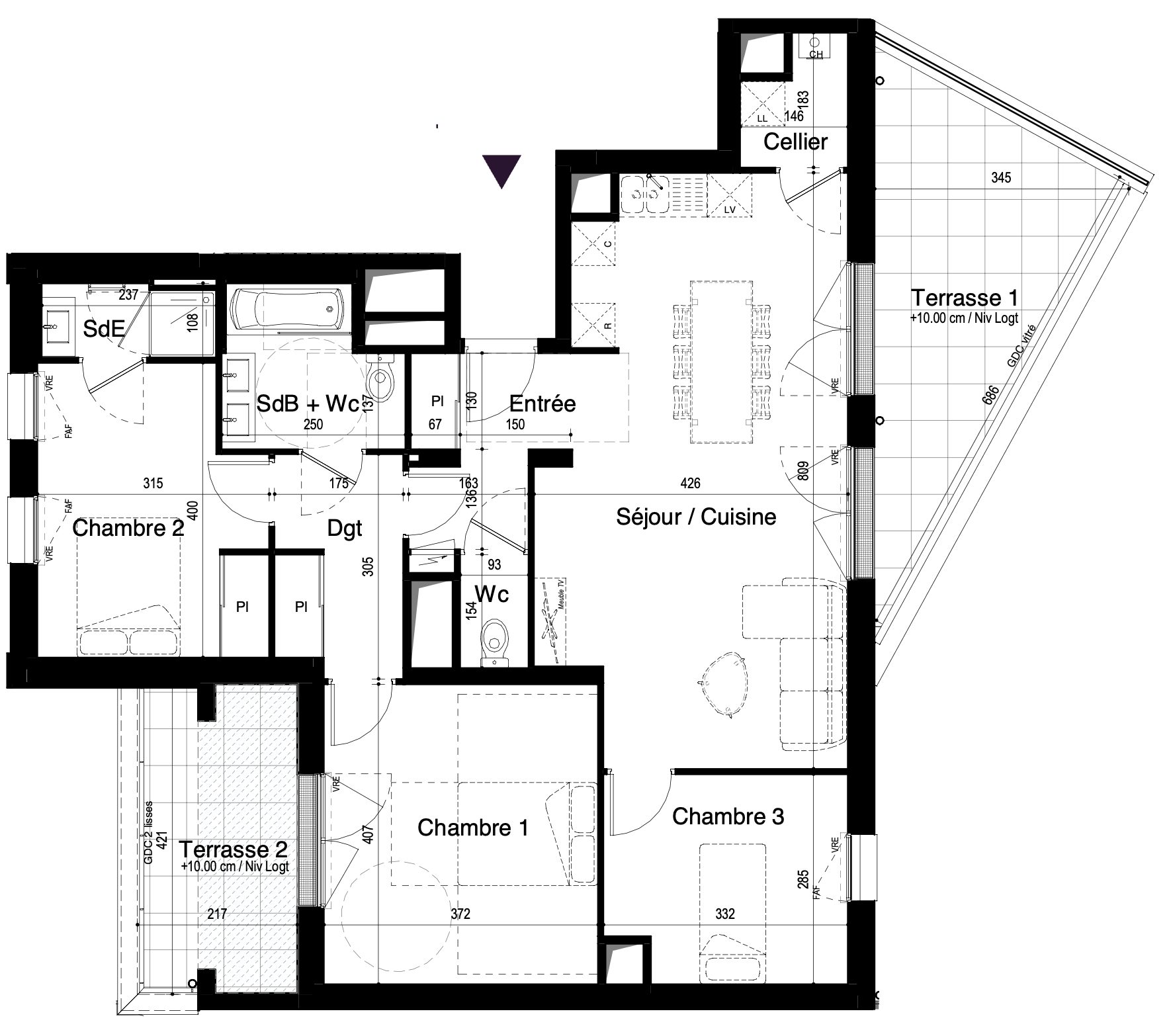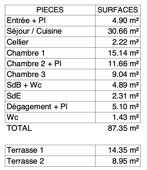 - Séjour 30m2 +chambre annexe et cellier : expo sud est avec terrasse 14,35m2