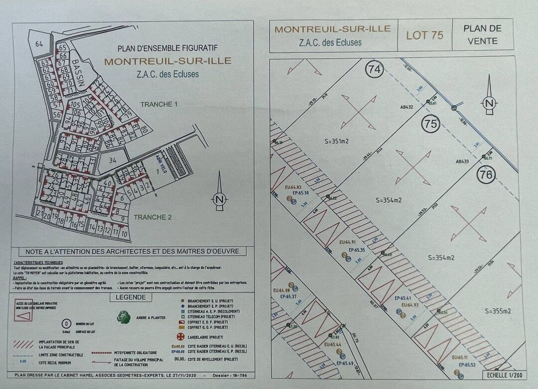 Ce terrain se situe dans un lotissement et à 5min à pied de la gare, des commodités (carrefour contact, boulangerie, bar, restaurants..) également de l'école primaire de Montreuil Sur Ille.