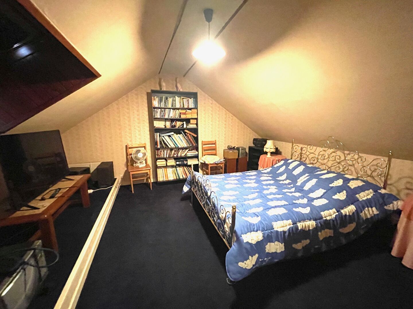 Maison individuelle environ 123m2 sur terrain 600m2 arboré. Au rez de chaussée :Séjour double avec cheminée insert, cuisine aménagée, couloir desservant 3 chambres dont 1 spacieuse, 2 salle d'eau, wc. À l'étage, deux chambres et une pièce passante à aménager selon vos envies.